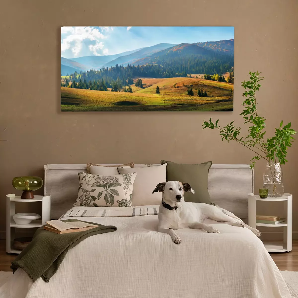 Das Motiv wird auf eine qualitativ hochwertige Leinwand gedruckt, die auf einen Blendrahmen gezogen wird. Da der Aufdruck die Seitenkanten bedeckt, muss das Bild nicht zusätzlich eingerahmt werden. Wir empfehlen außerdem Kompositionen aus mehreren Bildern, die ein harmonisches Ganzes bilden.