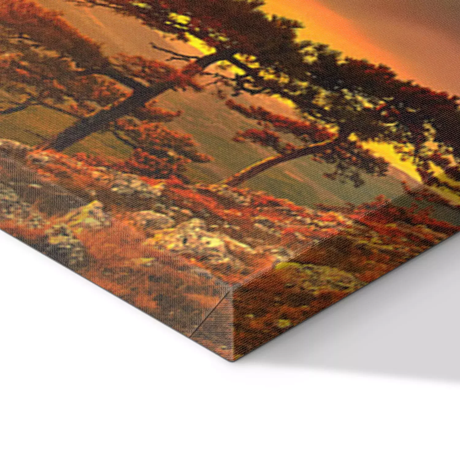 Das Motiv wird auf eine qualitativ hochwertige Leinwand gedruckt, die auf einen Blendrahmen gezogen wird. Da der Aufdruck die Seitenkanten bedeckt, muss das Bild nicht zusätzlich eingerahmt werden. Wir empfehlen außerdem Kompositionen aus mehreren Bildern, die ein harmonisches Ganzes bilden.