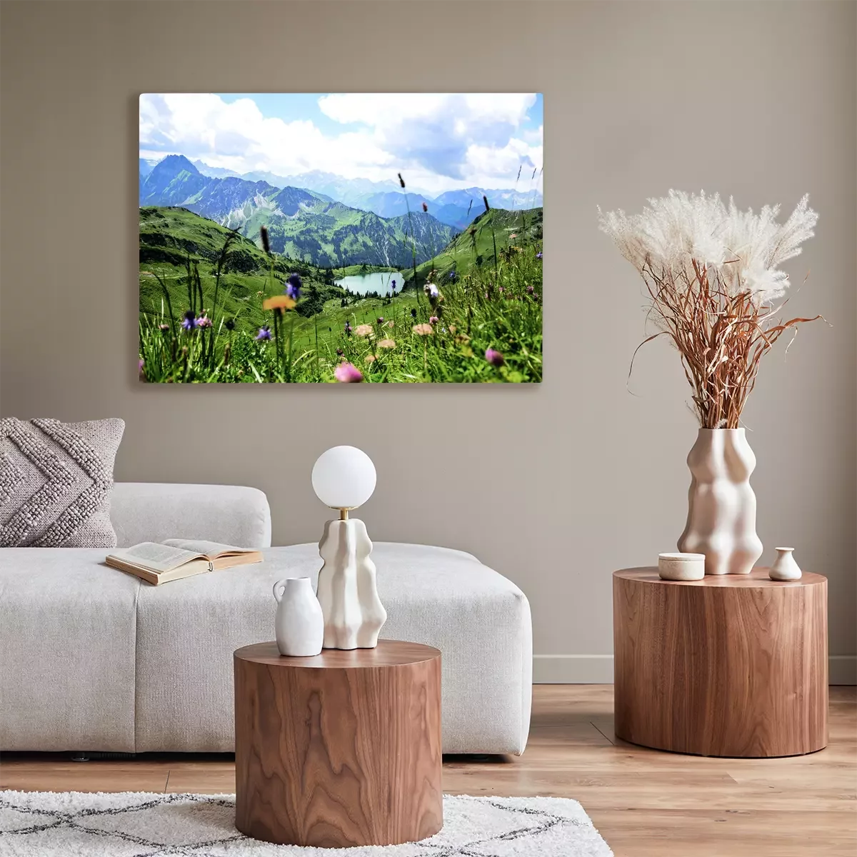 Bergwiesen mit wildblumen und einer felsigen landschaft