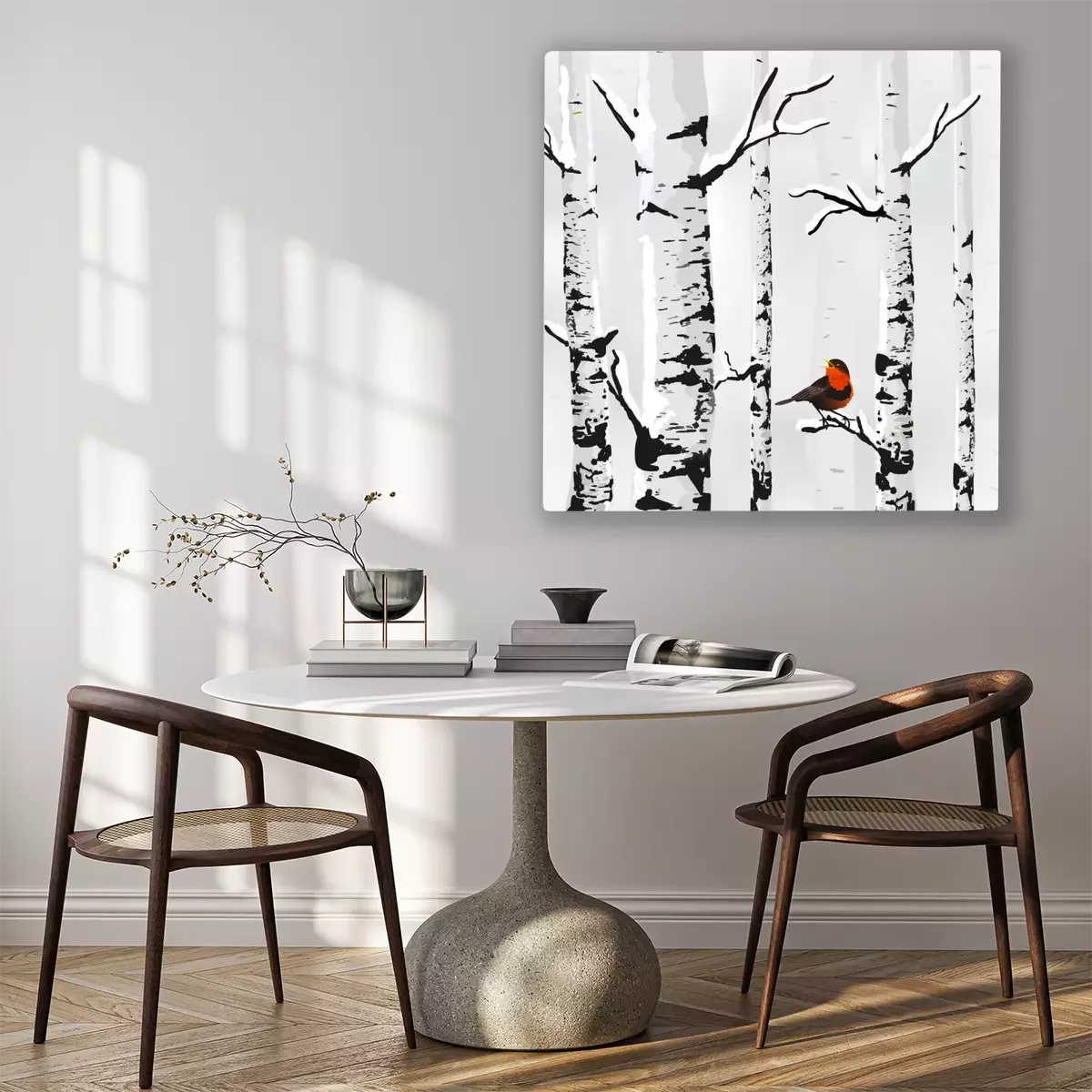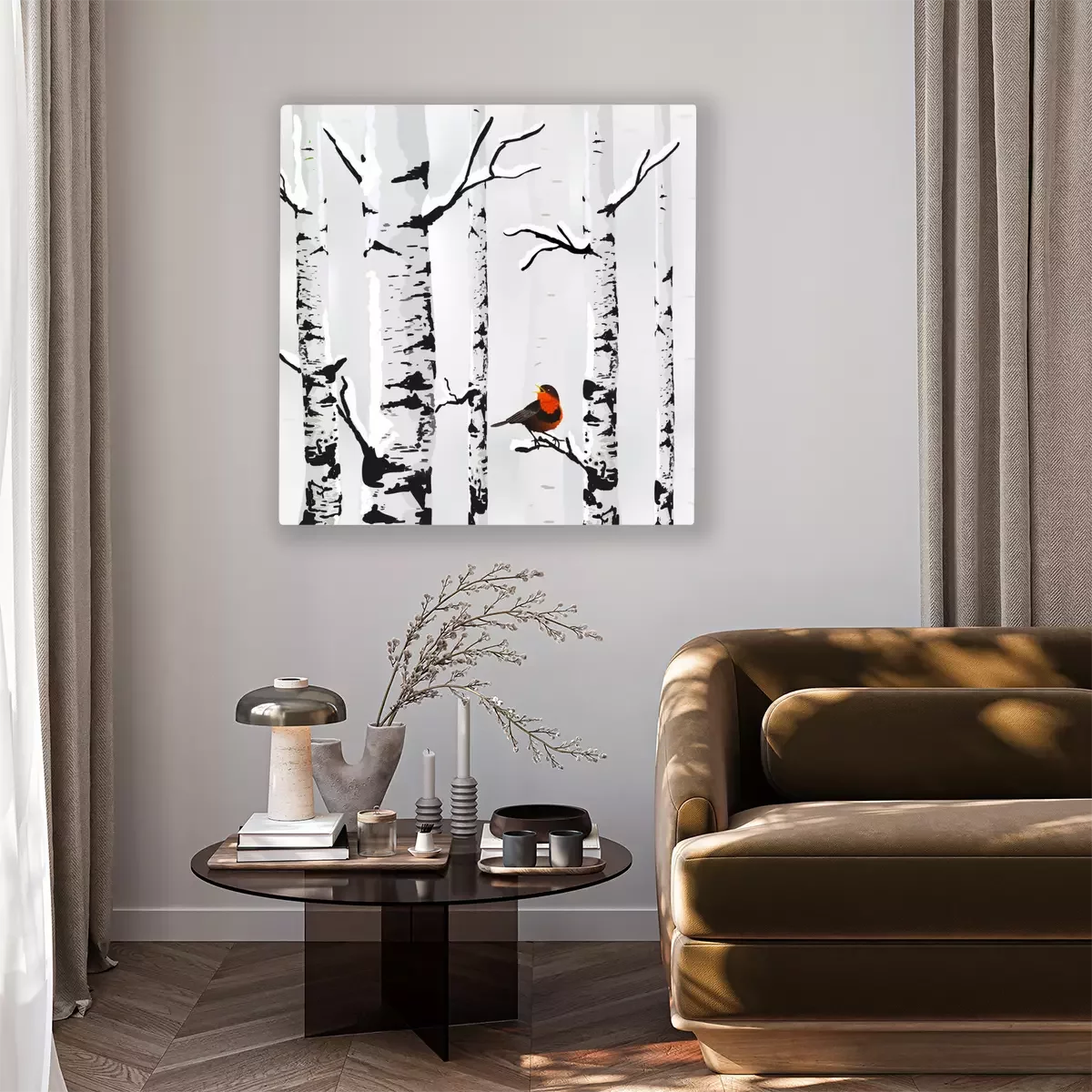 Illustration mit Birkenstämmen auf weißem Hintergrund