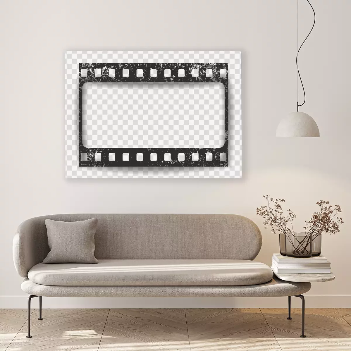 Bild Black scratched grunge film strip with shadow on squared background. Vector.