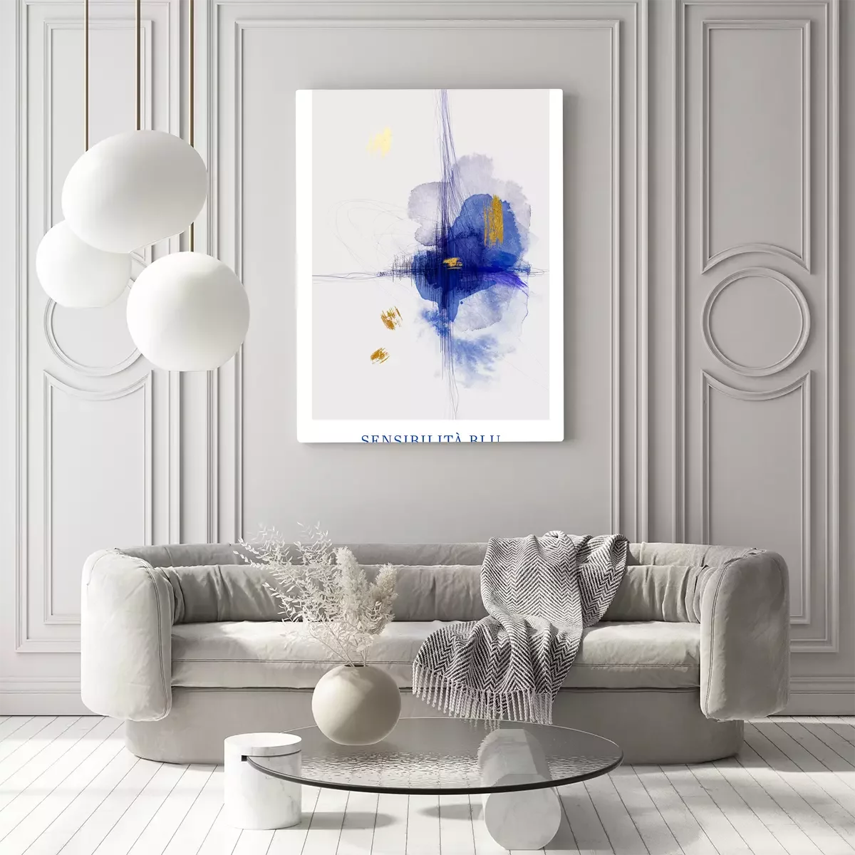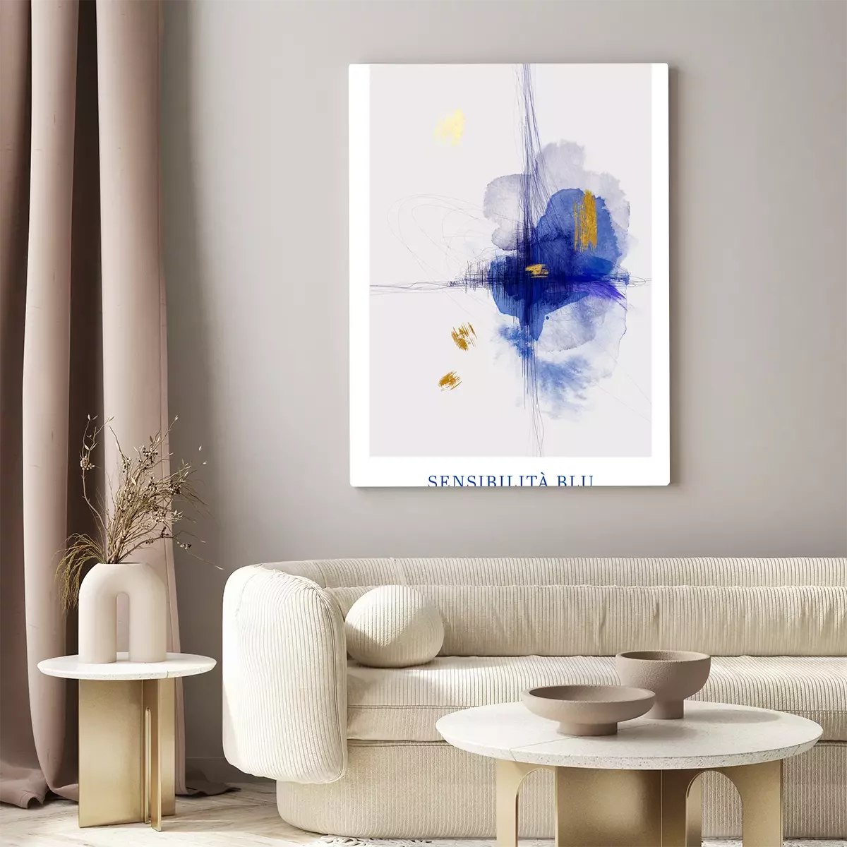 Blauer abstrakter fleck mit goldenen akzenten