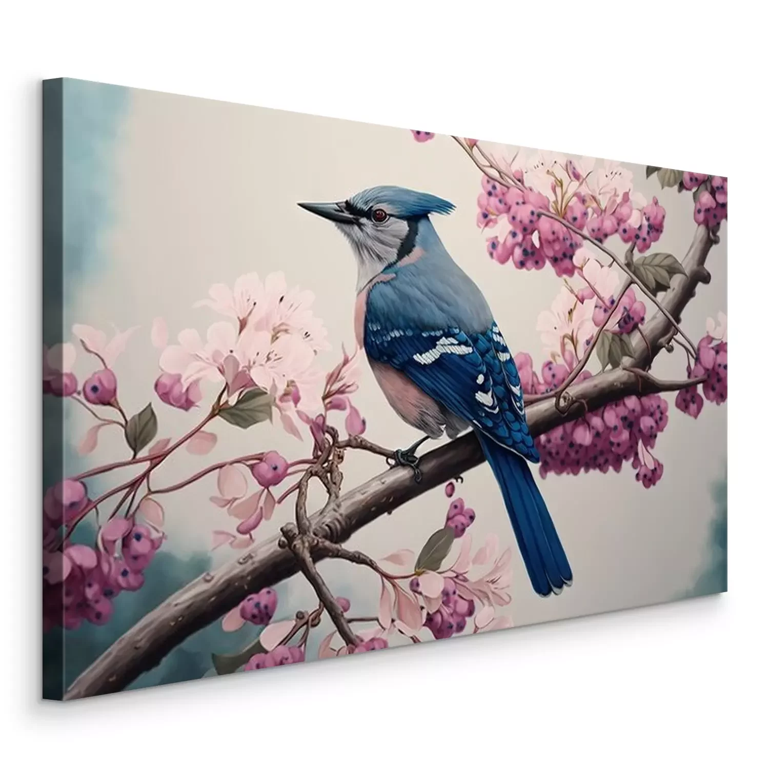 Bild Blauer Vogel auf einem Frühlingsbaumast