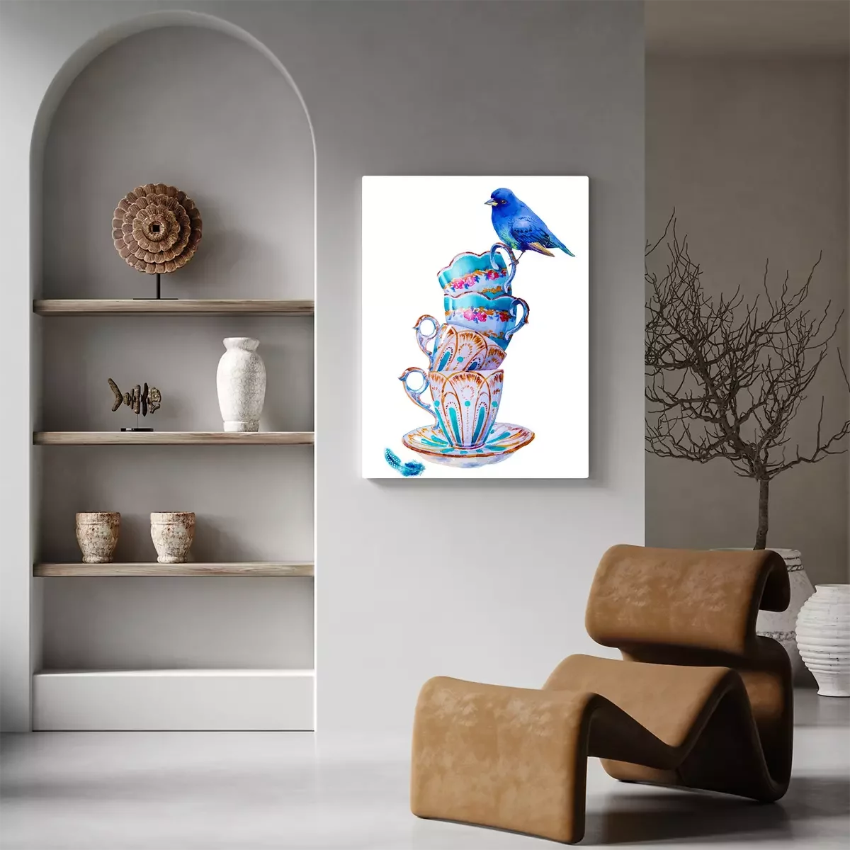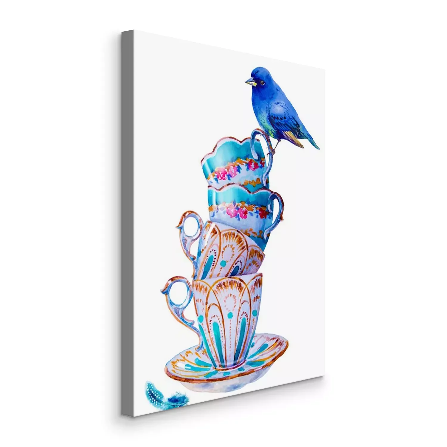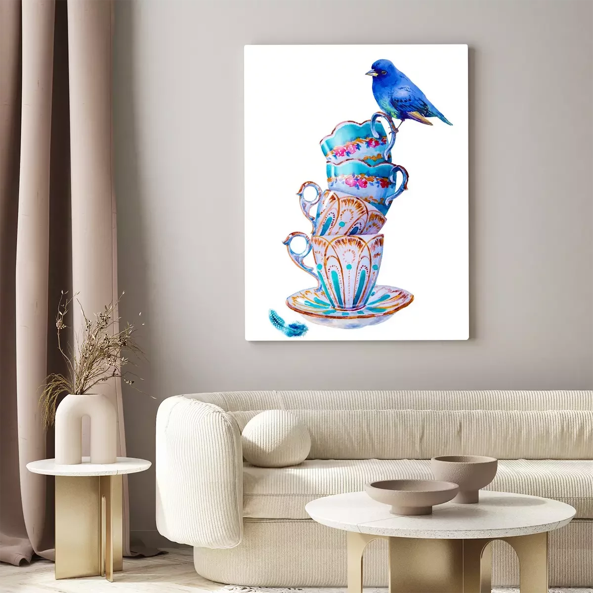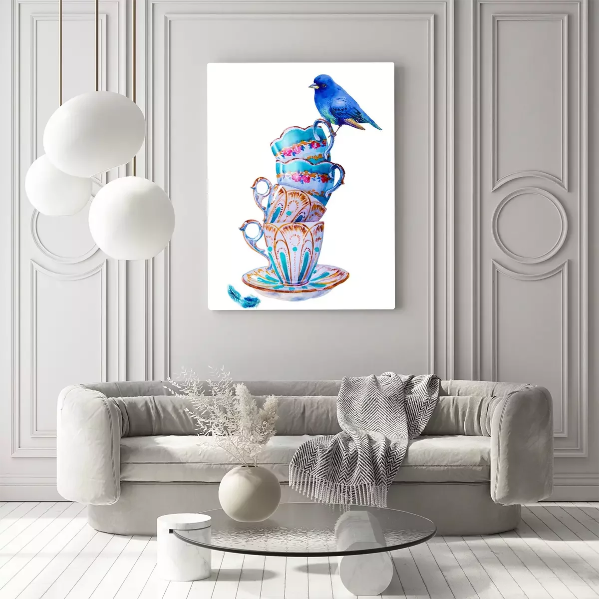 Bild Blauer Vogel und Shabby-Chic-Tassen