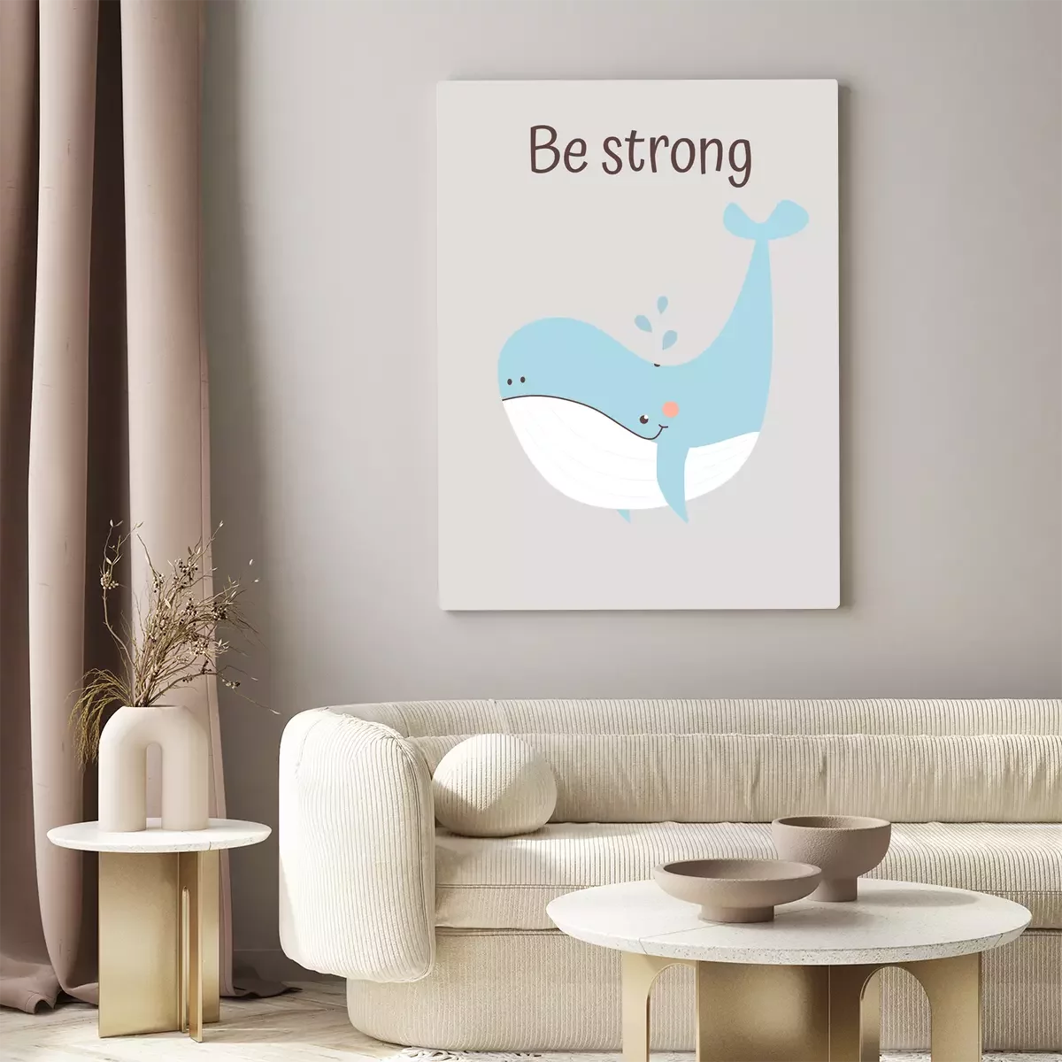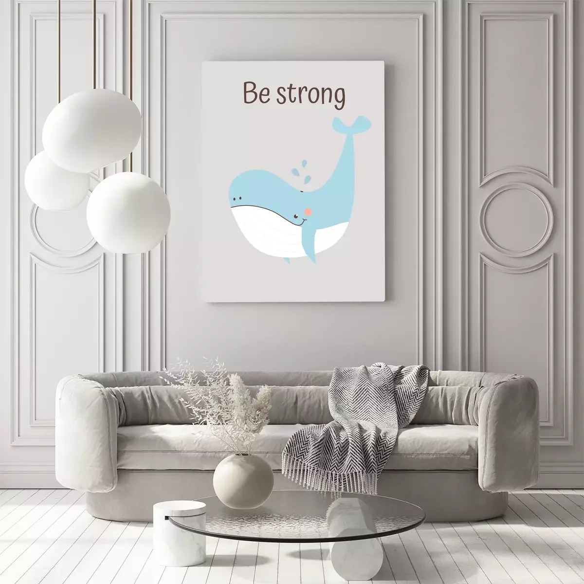 Blauwal mit einer von stärke inspirierten inschrift