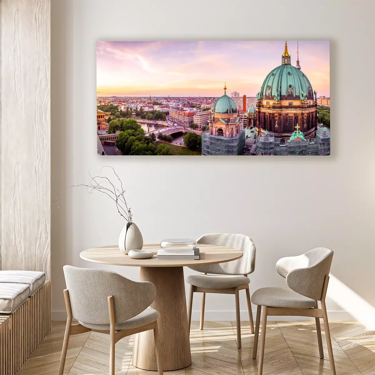Das Motiv wird auf eine qualitativ hochwertige Leinwand gedruckt, die auf einen Blendrahmen gezogen wird. Da der Aufdruck die Seitenkanten bedeckt, muss das Bild nicht zusätzlich eingerahmt werden. Wir empfehlen außerdem Kompositionen aus mehreren Bildern, die ein harmonisches Ganzes bilden.