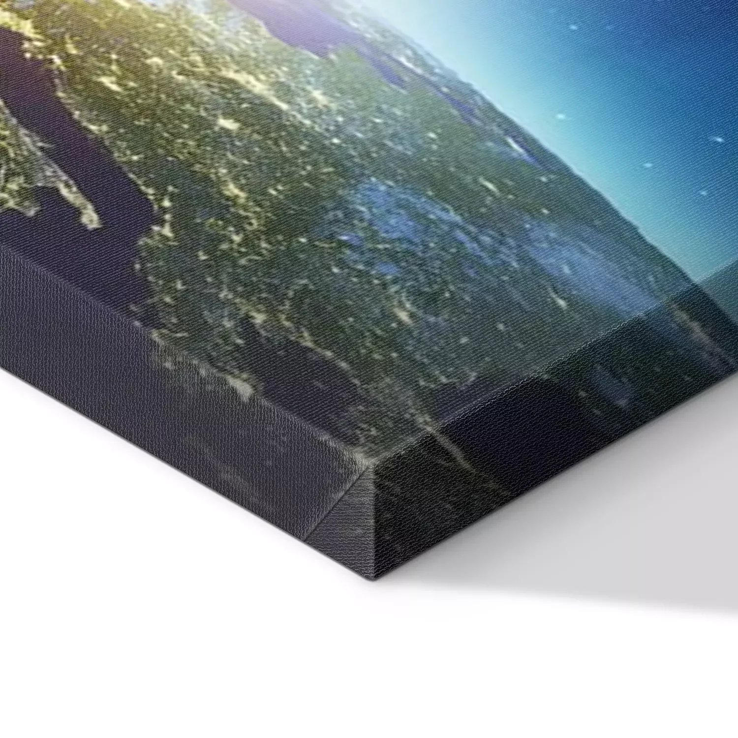 Das Motiv wird auf eine qualitativ hochwertige Leinwand gedruckt, die auf einen Blendrahmen gezogen wird. Da der Aufdruck die Seitenkanten bedeckt, muss das Bild nicht zusätzlich eingerahmt werden. Wir empfehlen außerdem Kompositionen aus mehreren Bildern, die ein harmonisches Ganzes bilden.