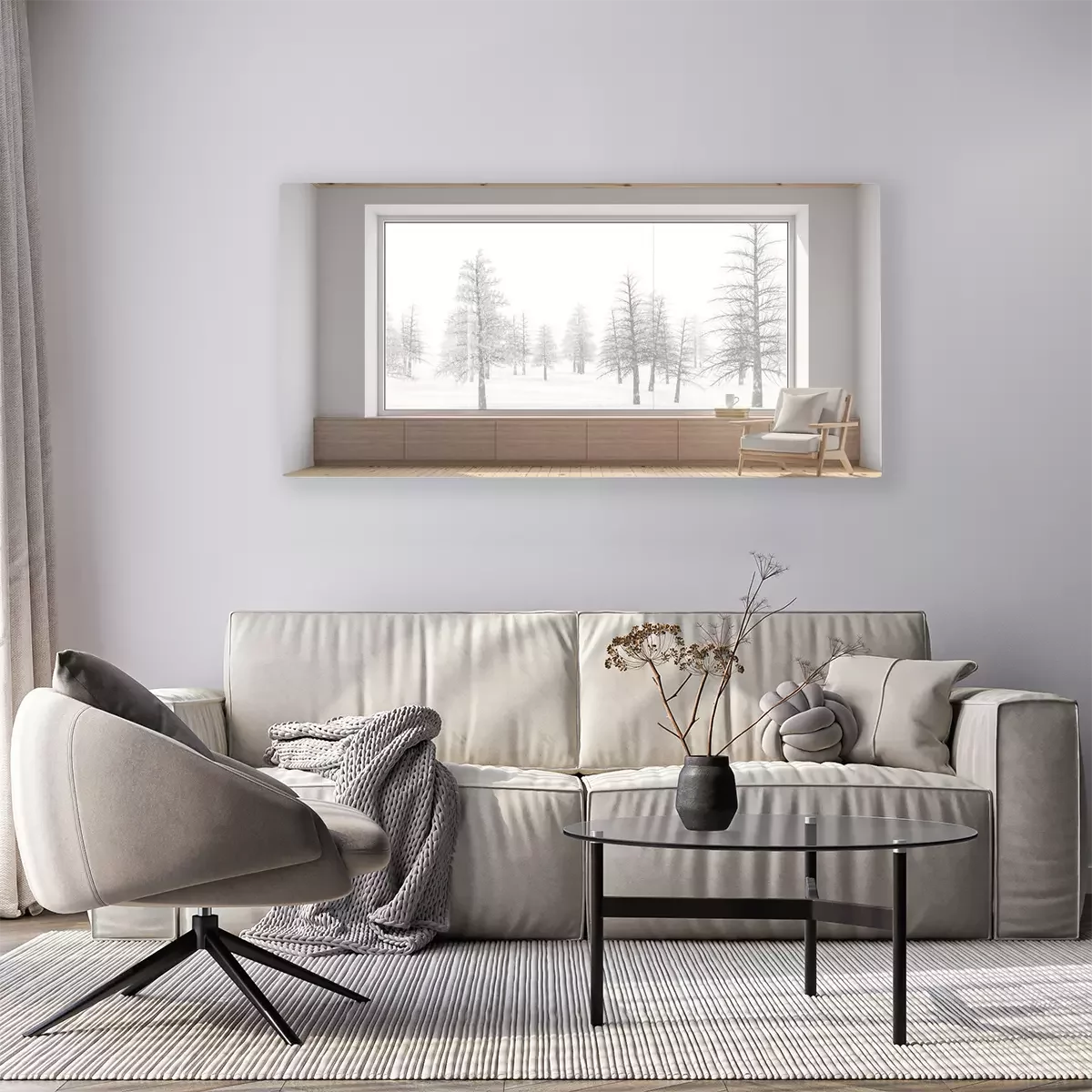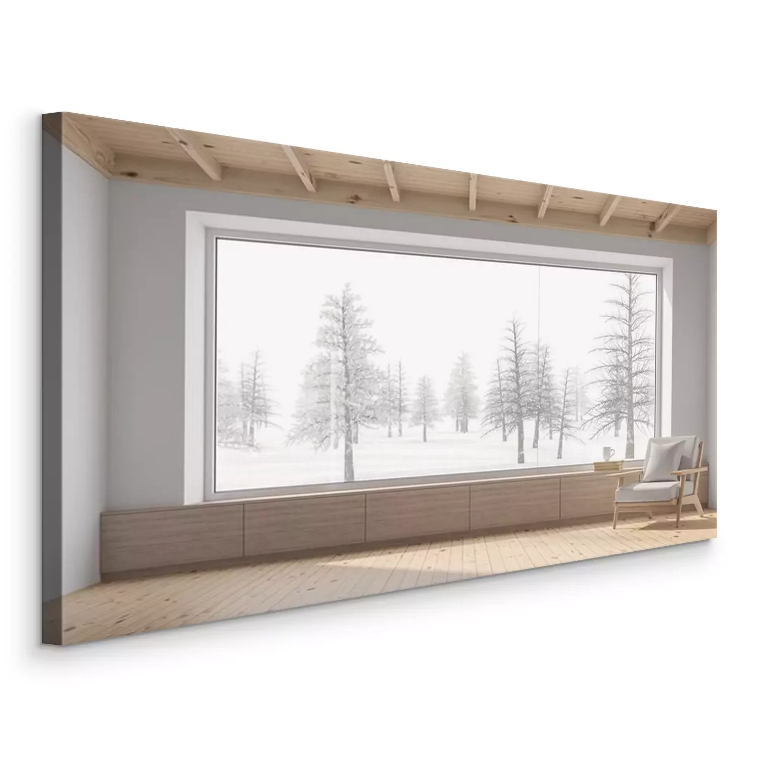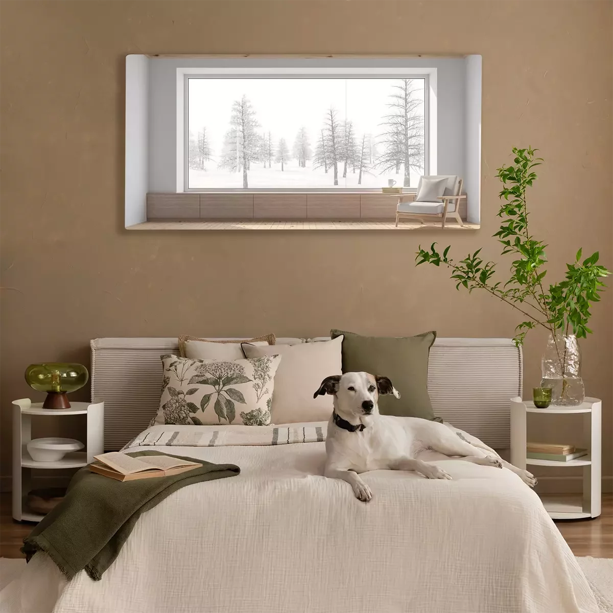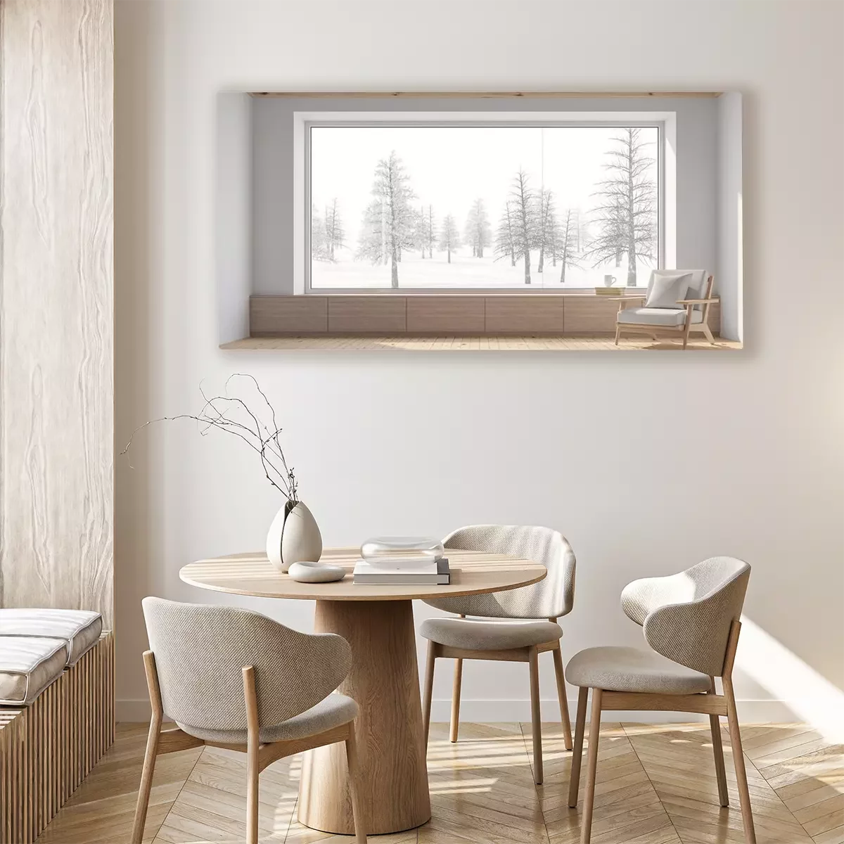 Bild Blick aus dem Fenster auf winterliche Bäume