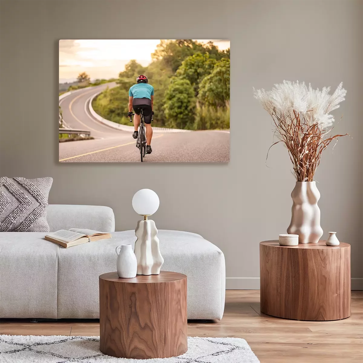 Bild Blick von hinten auf Radfahrer und Fahrrad