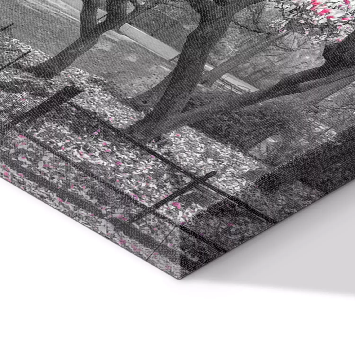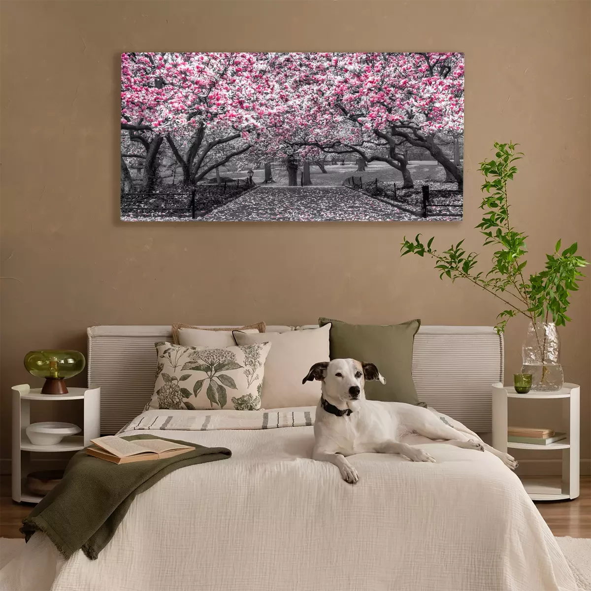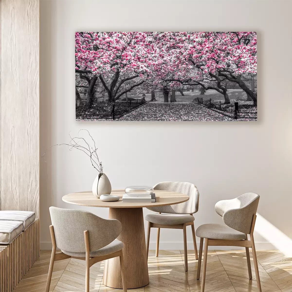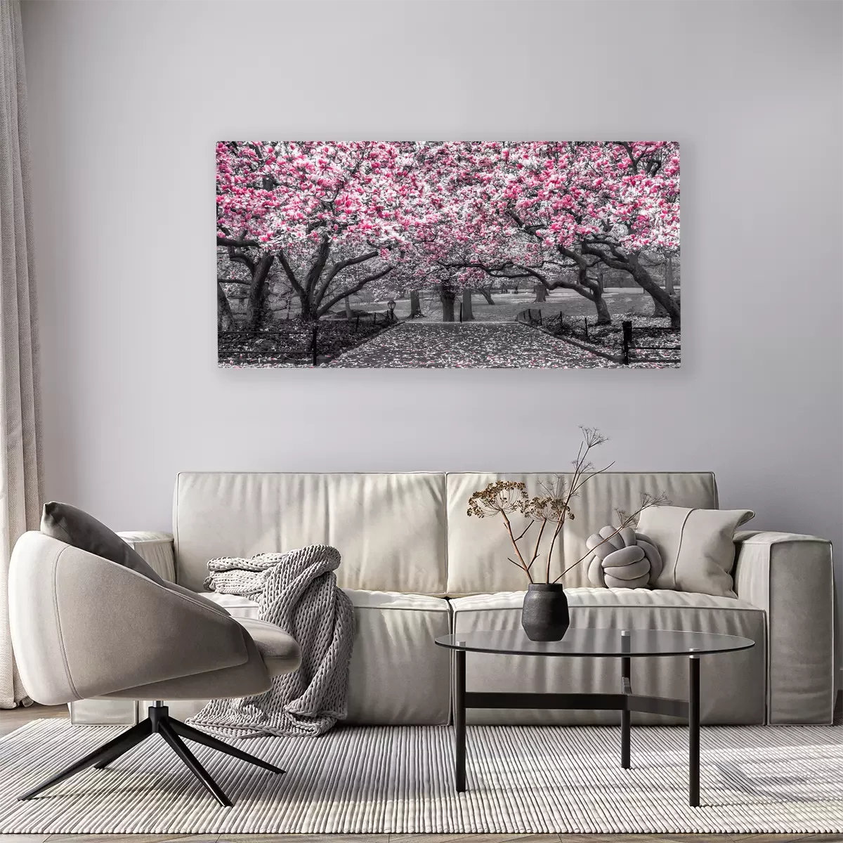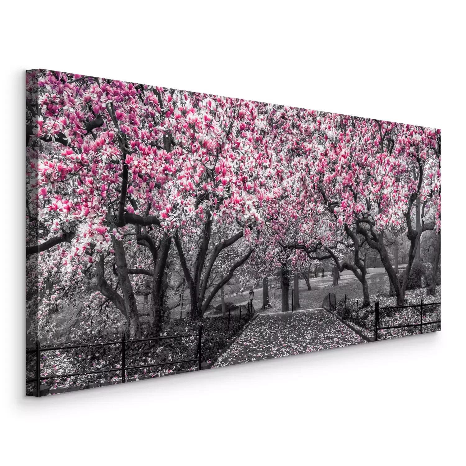 Blühende magnolienbäume entlang eines steinwegs