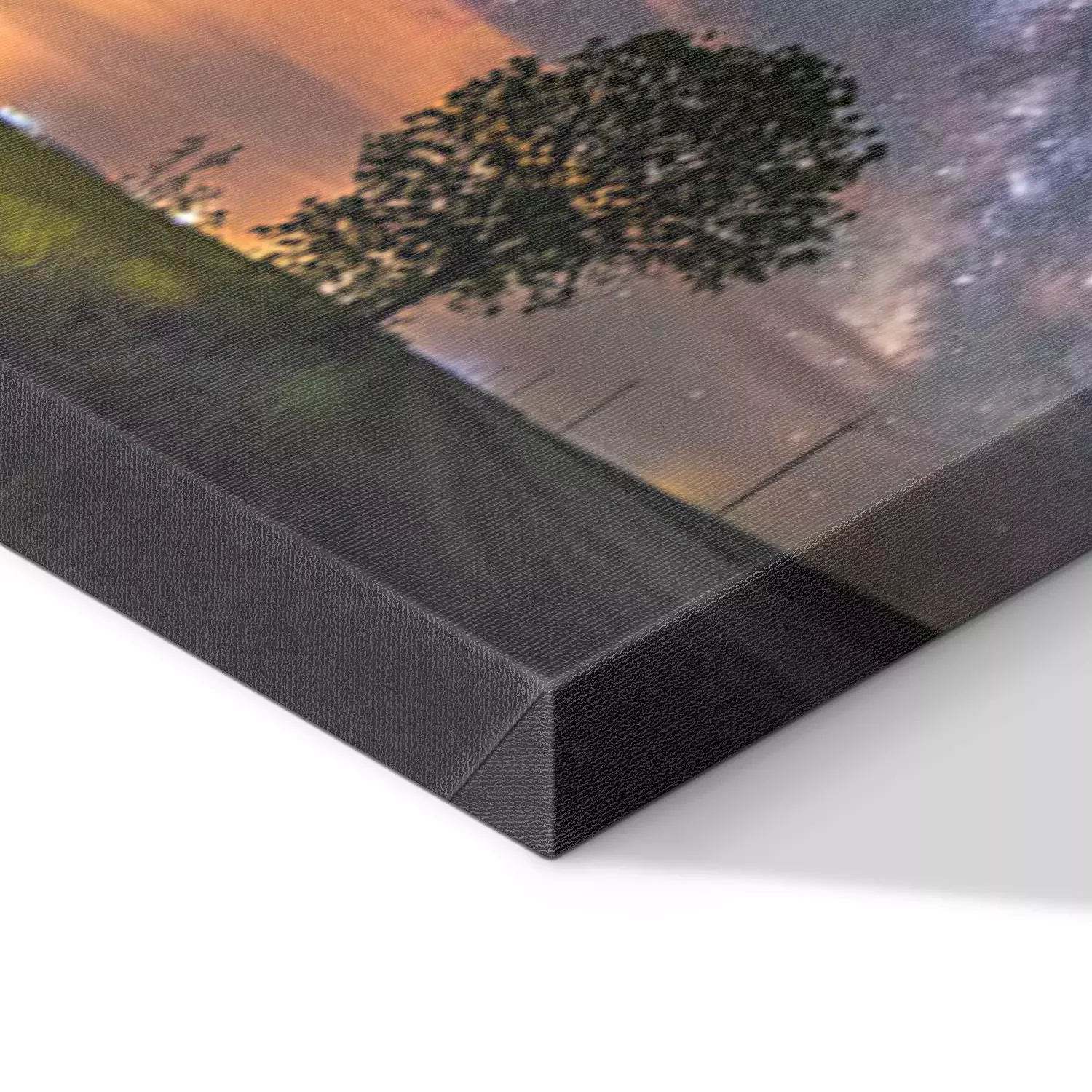 Das Motiv wird auf eine qualitativ hochwertige Leinwand gedruckt, die auf einen Blendrahmen gezogen wird. Da der Aufdruck die Seitenkanten bedeckt, muss das Bild nicht zusätzlich eingerahmt werden. Wir empfehlen außerdem Kompositionen aus mehreren Bildern, die ein harmonisches Ganzes bilden.