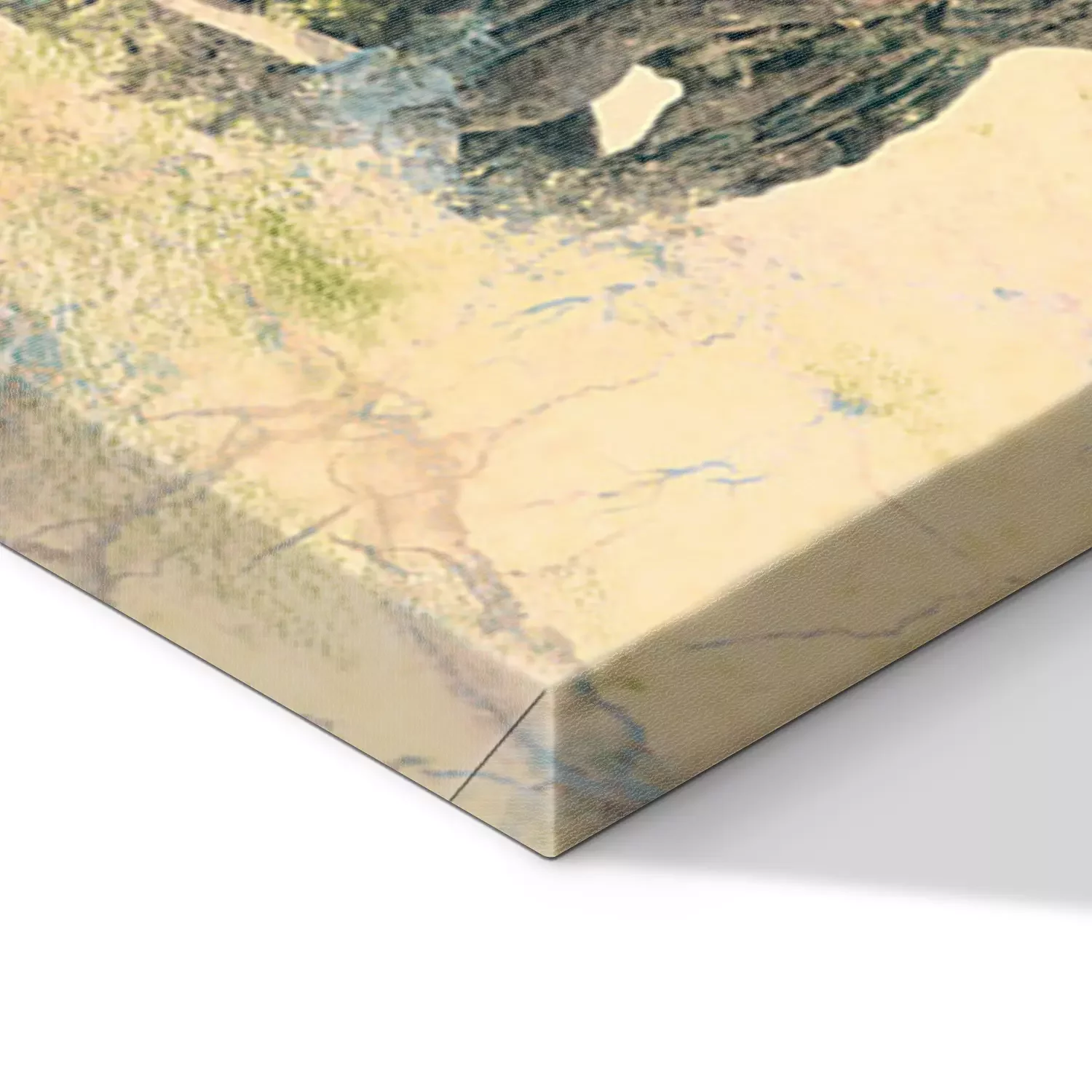 Das Motiv wird auf eine qualitativ hochwertige Leinwand gedruckt, die auf einen Blendrahmen gezogen wird. Da der Aufdruck die Seitenkanten bedeckt, muss das Bild nicht zusätzlich eingerahmt werden. Wir empfehlen außerdem Kompositionen aus mehreren Bildern, die ein harmonisches Ganzes bilden.