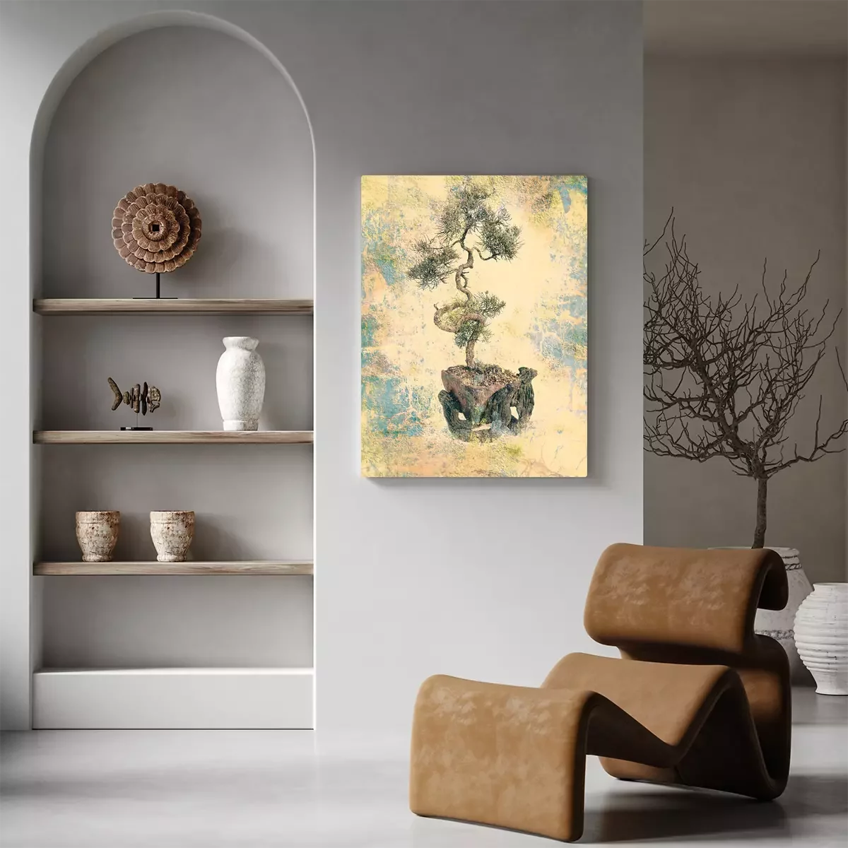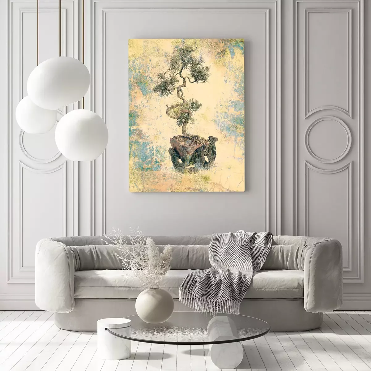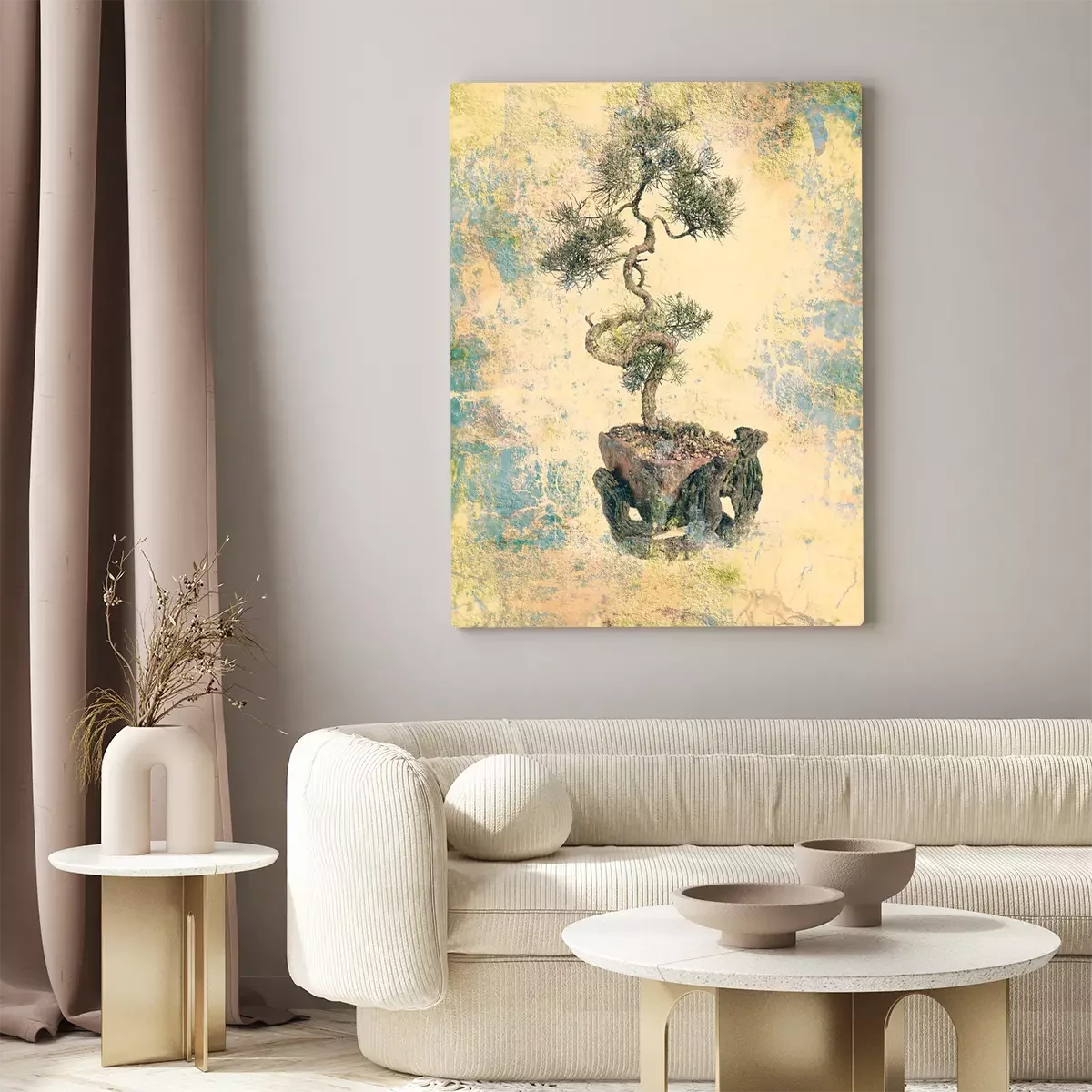 Bild Bonsai-Baum vor dem Hintergrund von altem Papier