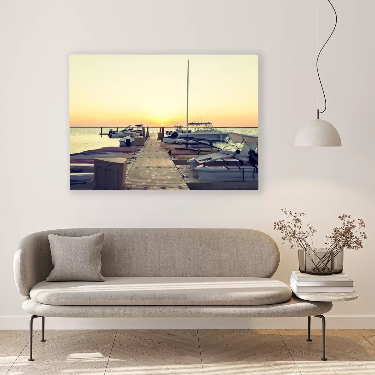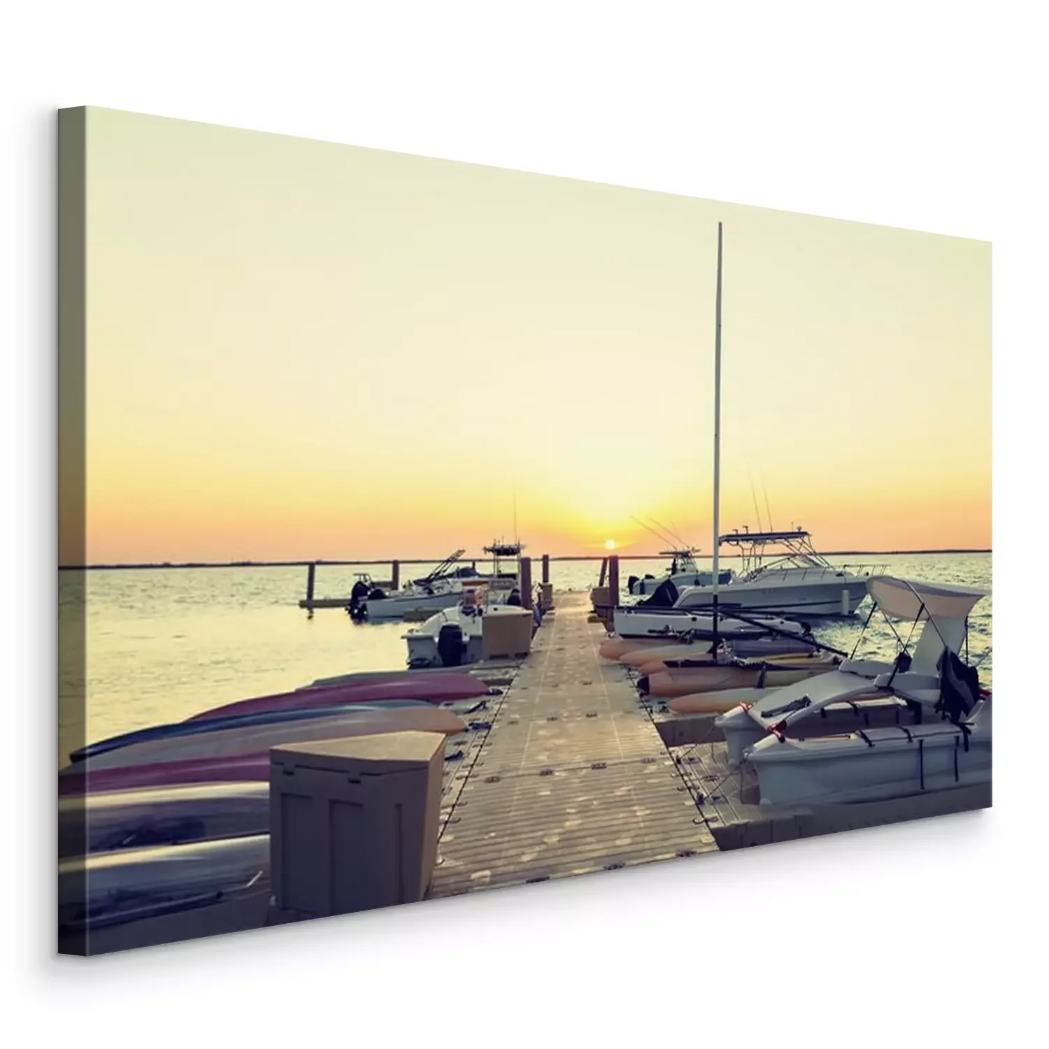Bild Boote bei Sonnenuntergang am Pier vertäut