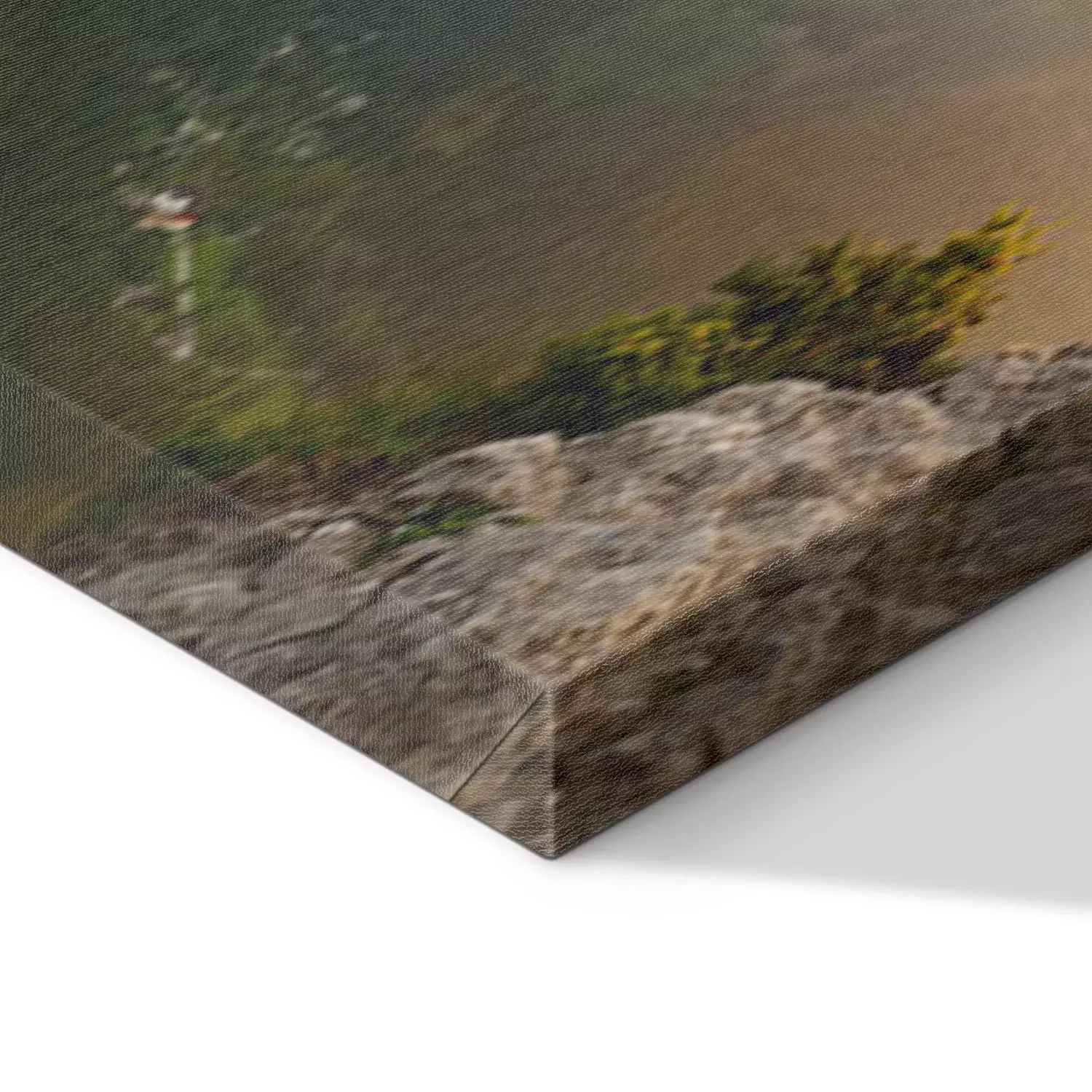 Das Motiv wird auf eine qualitativ hochwertige Leinwand gedruckt, die auf einen Blendrahmen gezogen wird. Da der Aufdruck die Seitenkanten bedeckt, muss das Bild nicht zusätzlich eingerahmt werden. Wir empfehlen außerdem Kompositionen aus mehreren Bildern, die ein harmonisches Ganzes bilden.