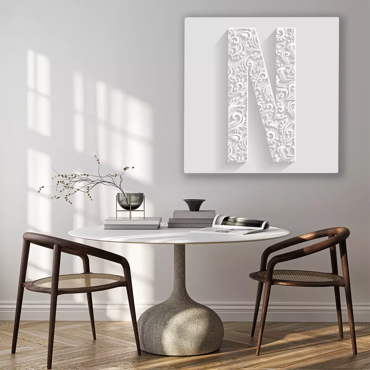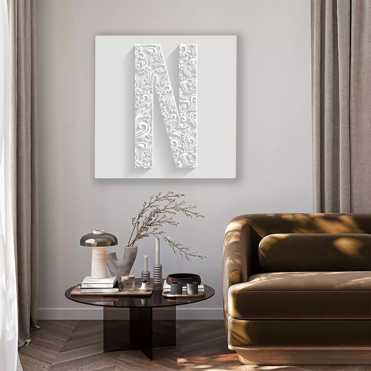 Bild Buchstabe N mit floralem Ornament