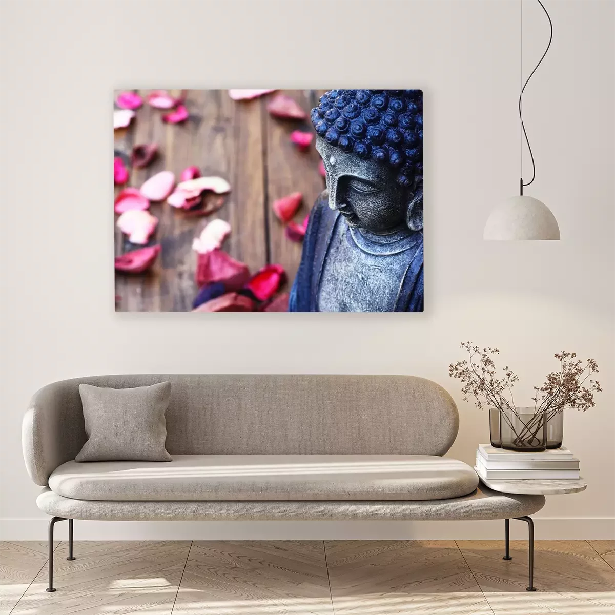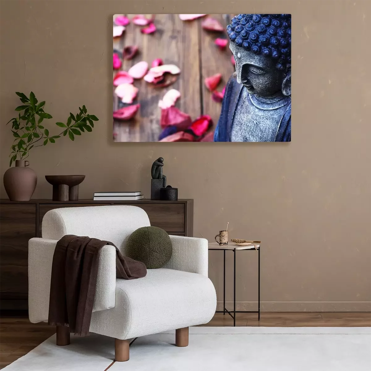 Bild Buddha-Figur und Rosenblätter