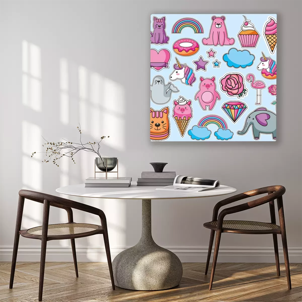 Das Motiv wird auf eine qualitativ hochwertige Leinwand gedruckt, die auf einen Blendrahmen gezogen wird. Da der Aufdruck die Seitenkanten bedeckt, muss das Bild nicht zusätzlich eingerahmt werden. Wir empfehlen außerdem Kompositionen aus mehreren Bildern, die ein harmonisches Ganzes bilden.