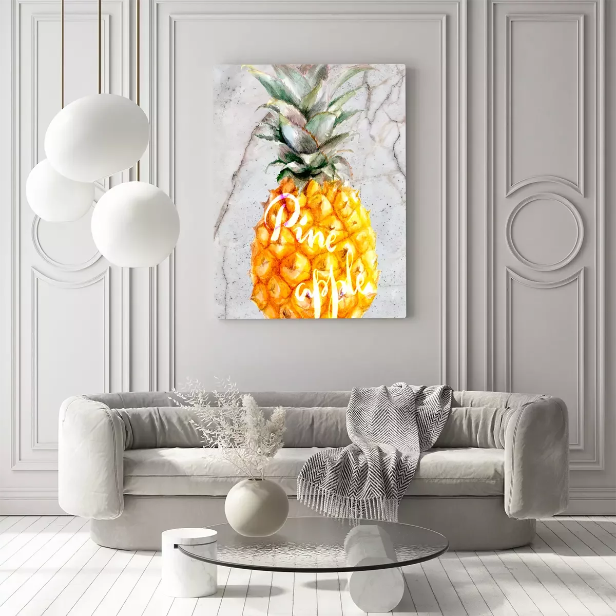 Bunte ananas auf marmorhintergrund