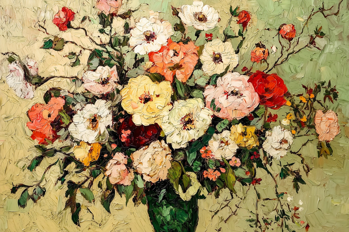 Bild: Bunte Blumen in einer Vase im malerischen Stil