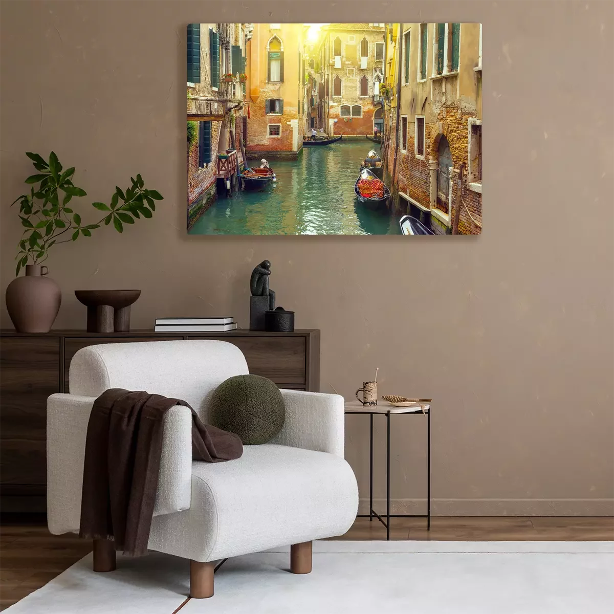 Bild: Bunte Häuschen und Gondeln in Venedig