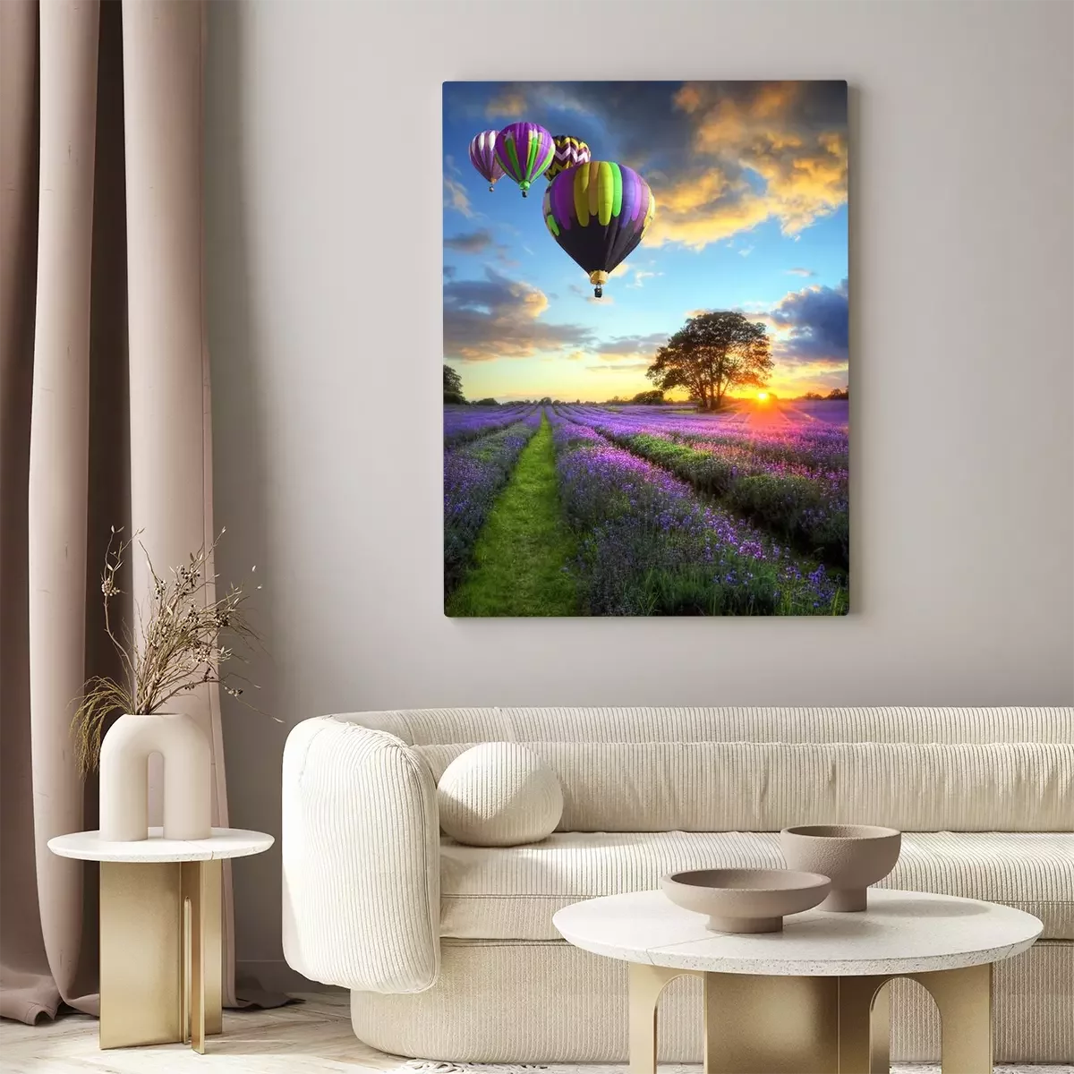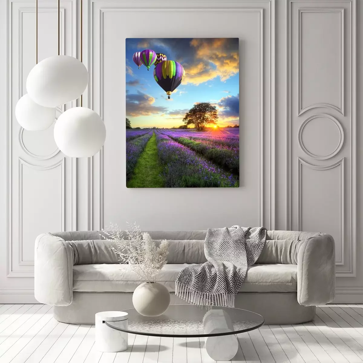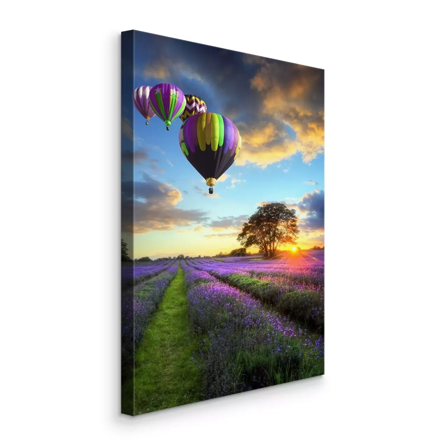 Atemberaubende Lavendelfeld Landschaft Sommer Sonnenuntergang mit Heißluft bal