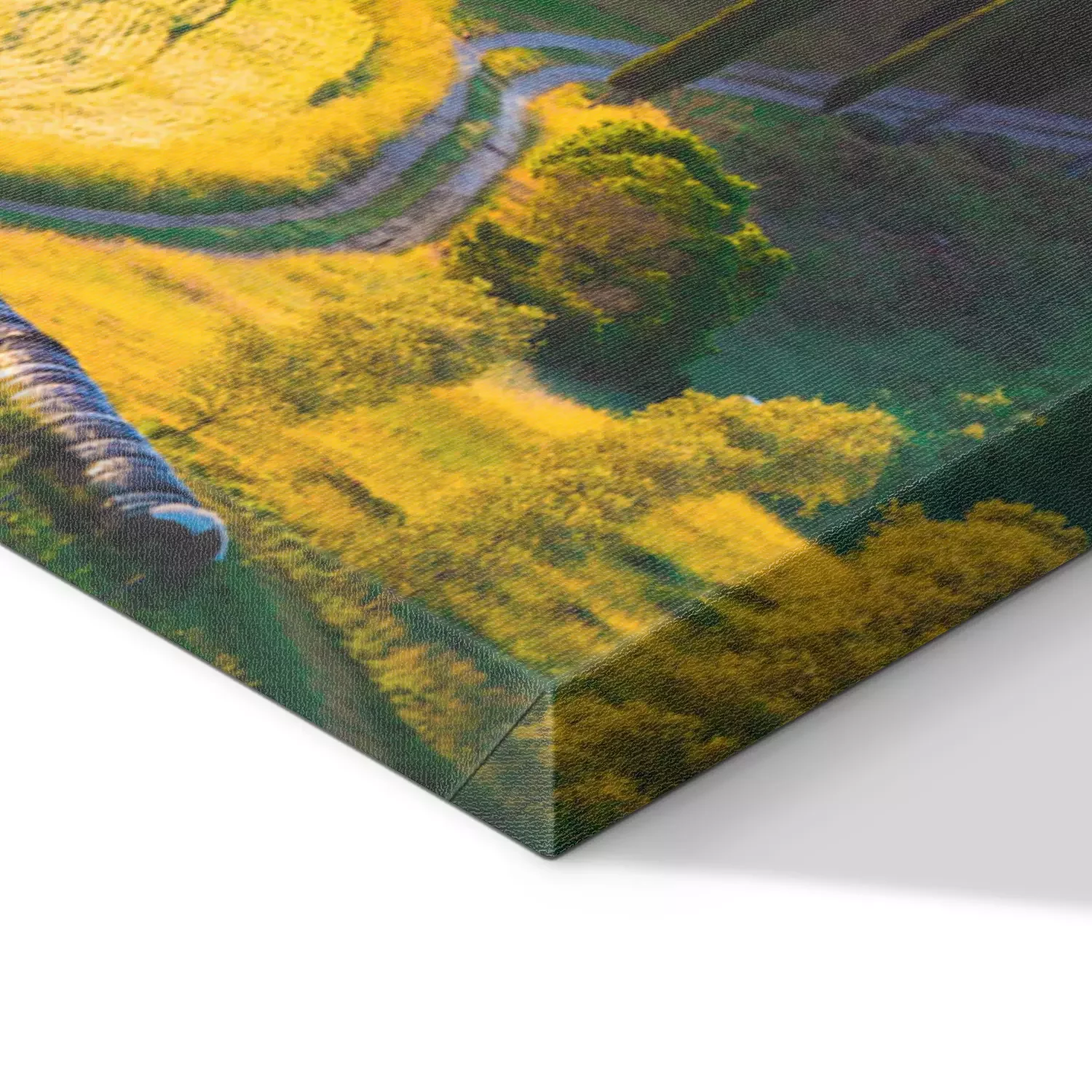 Das Motiv wird auf eine qualitativ hochwertige Leinwand gedruckt, die auf einen Blendrahmen gezogen wird. Da der Aufdruck die Seitenkanten bedeckt, muss das Bild nicht zusätzlich eingerahmt werden. Wir empfehlen außerdem Kompositionen aus mehreren Bildern, die ein harmonisches Ganzes bilden.