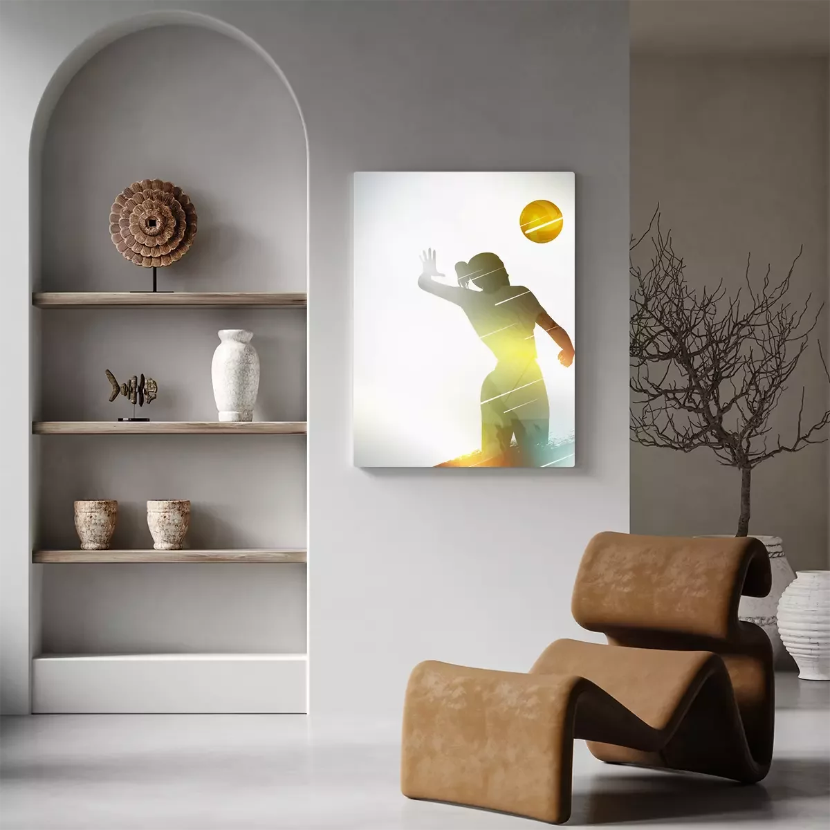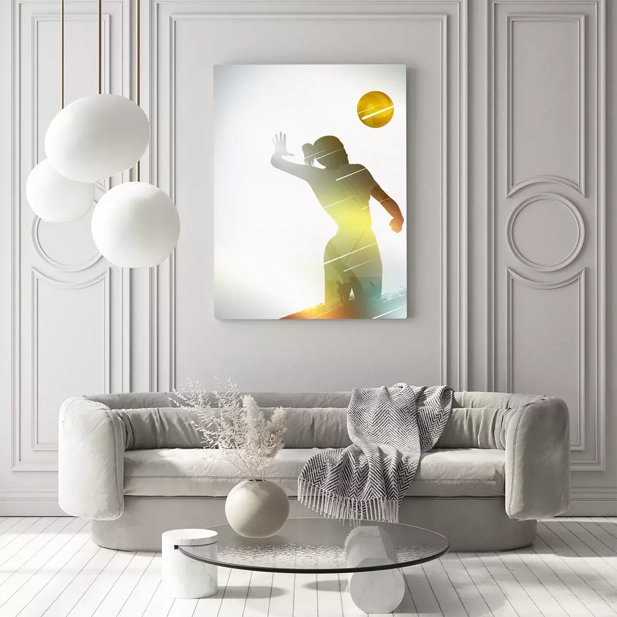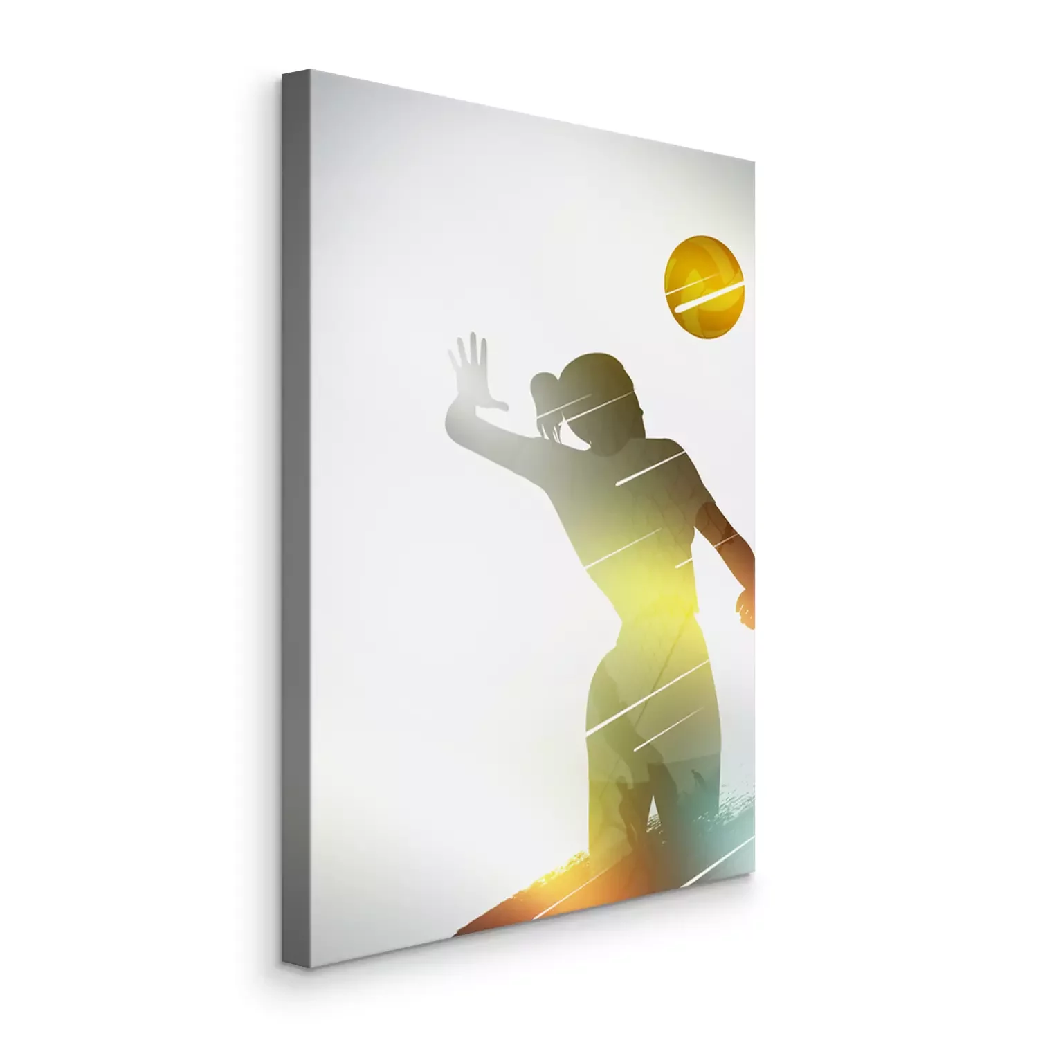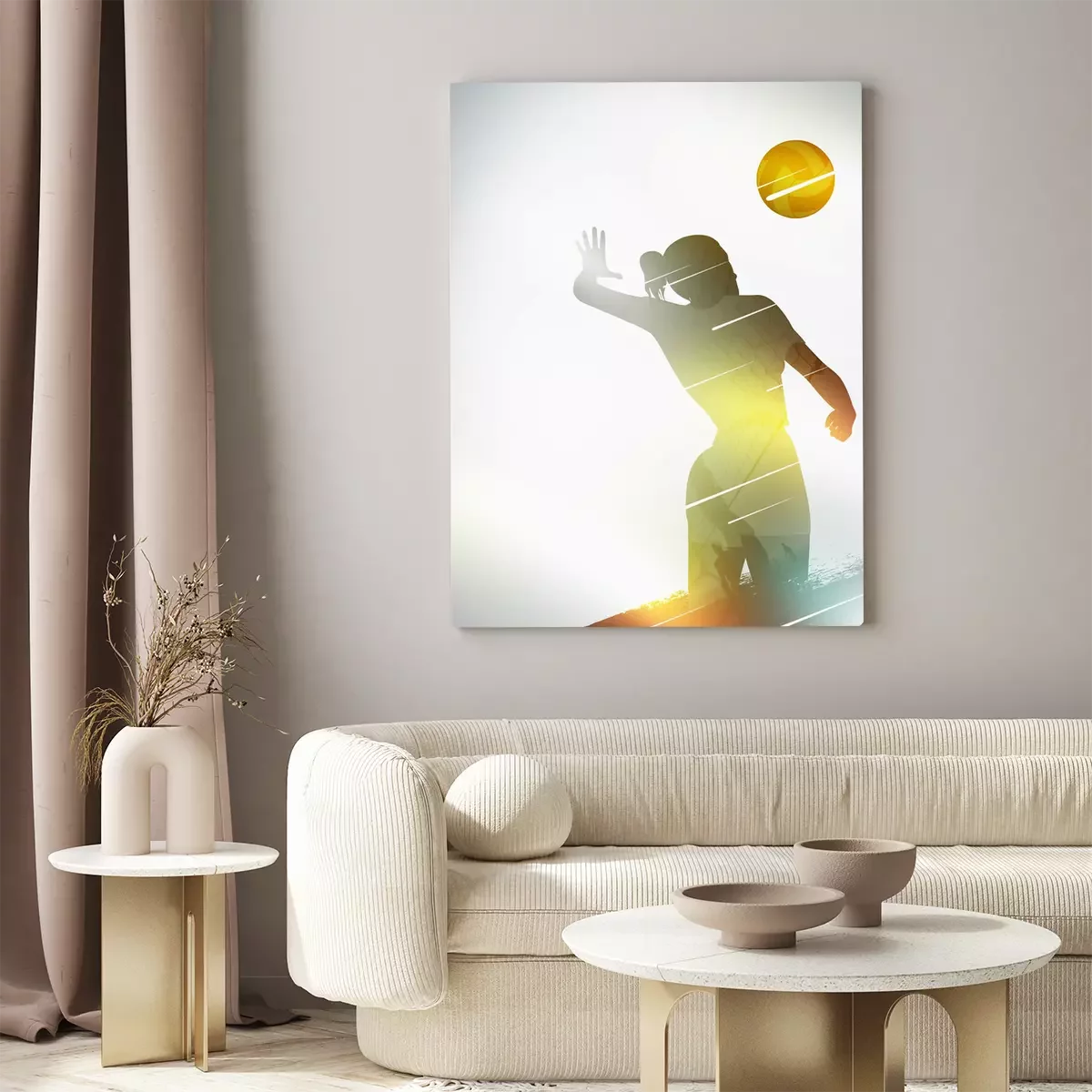 Volleyball Beschriftung und ein aufschlagender Volleyballspieler im Hintergrund