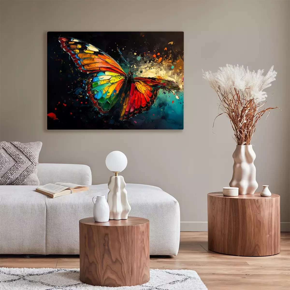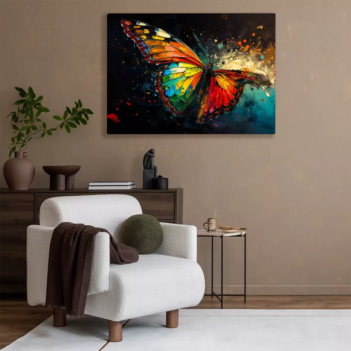 Bunter schmetterling und farbspritzer