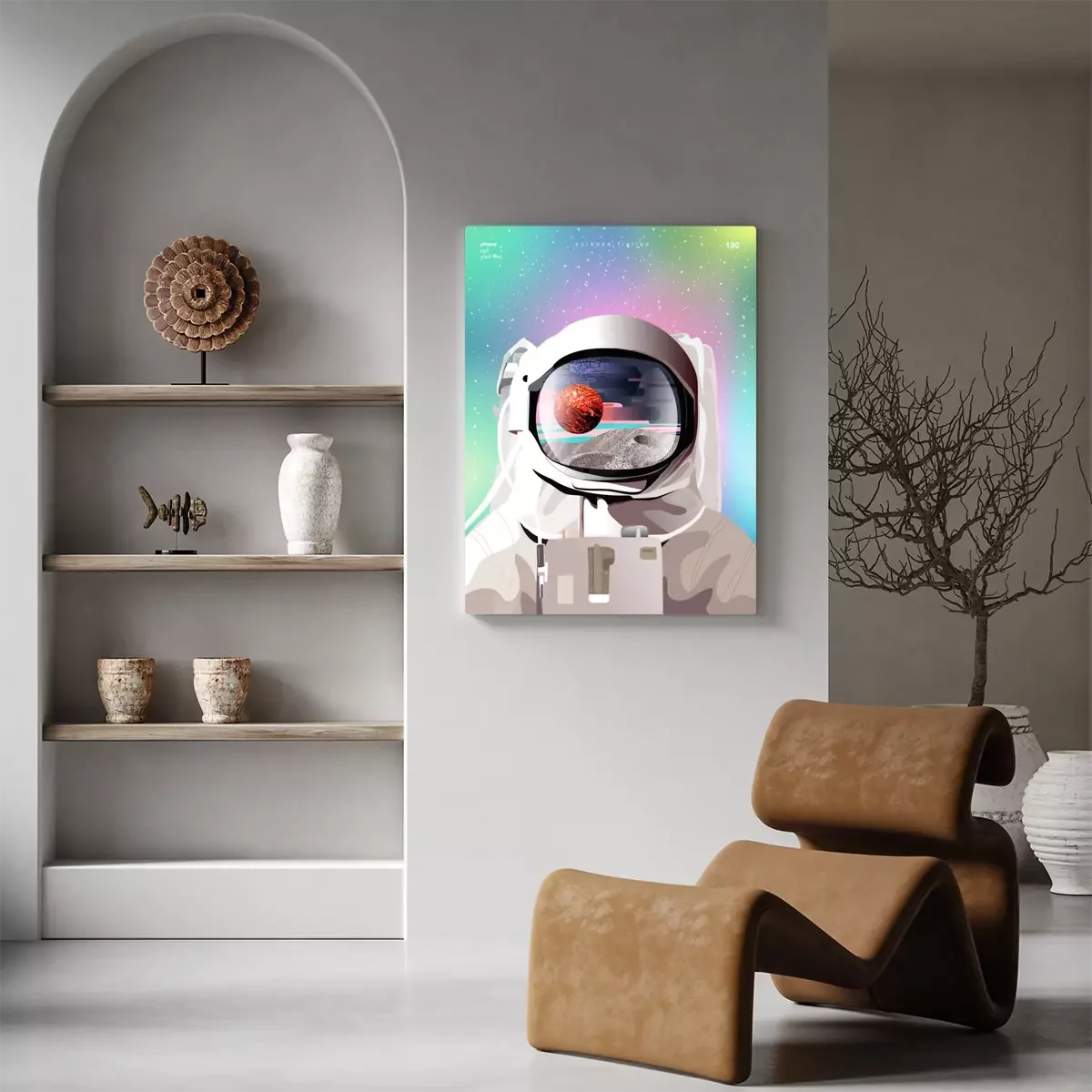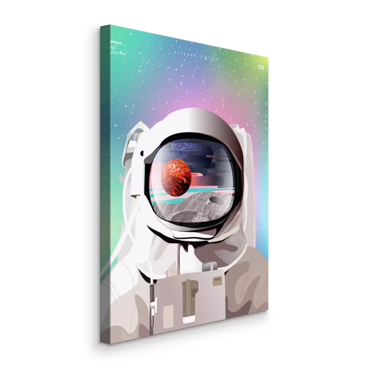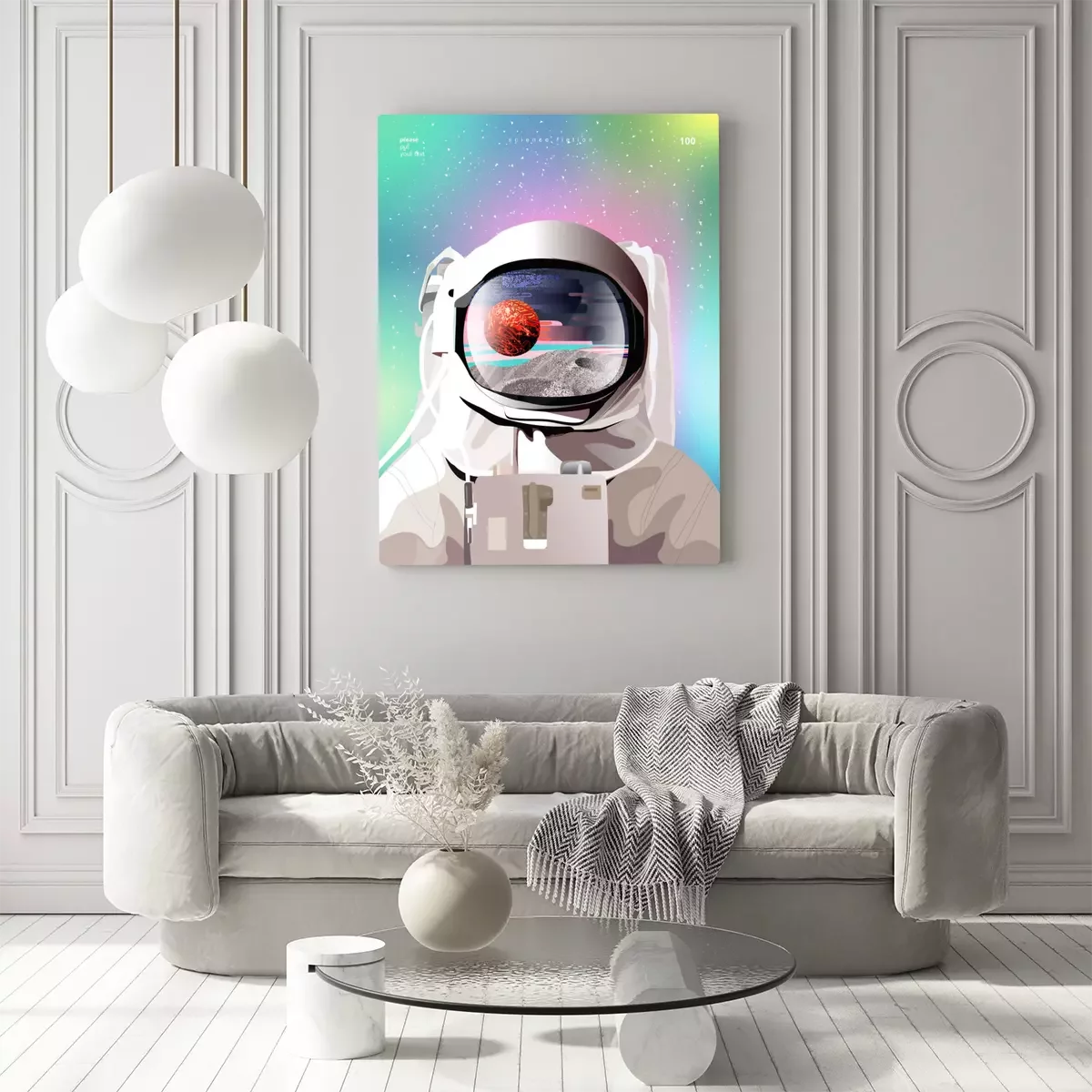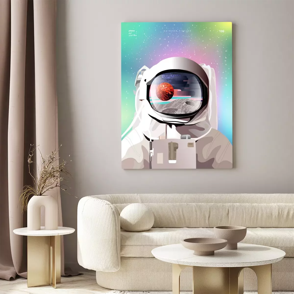 Astronaut vor dem Hintergrund eines rosa-blauen Planeten