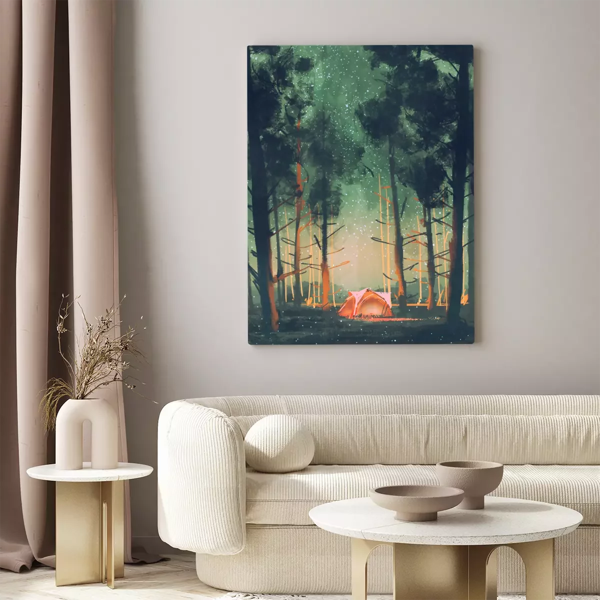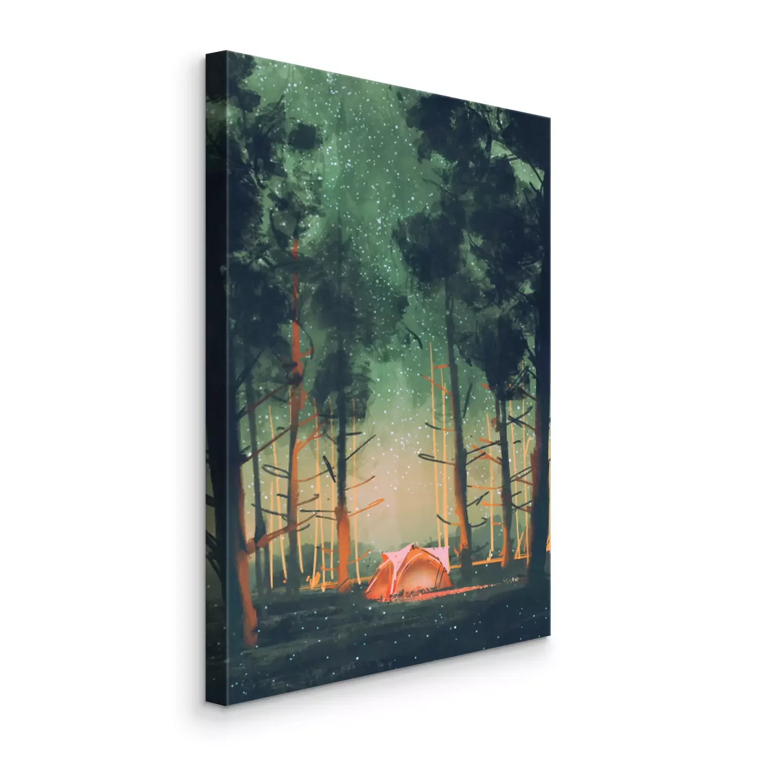 Bild Camping im Wald in der Nacht mit Sternen und Glühwürmchen, Illustration, digitale Malerei