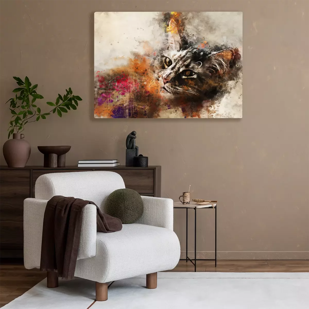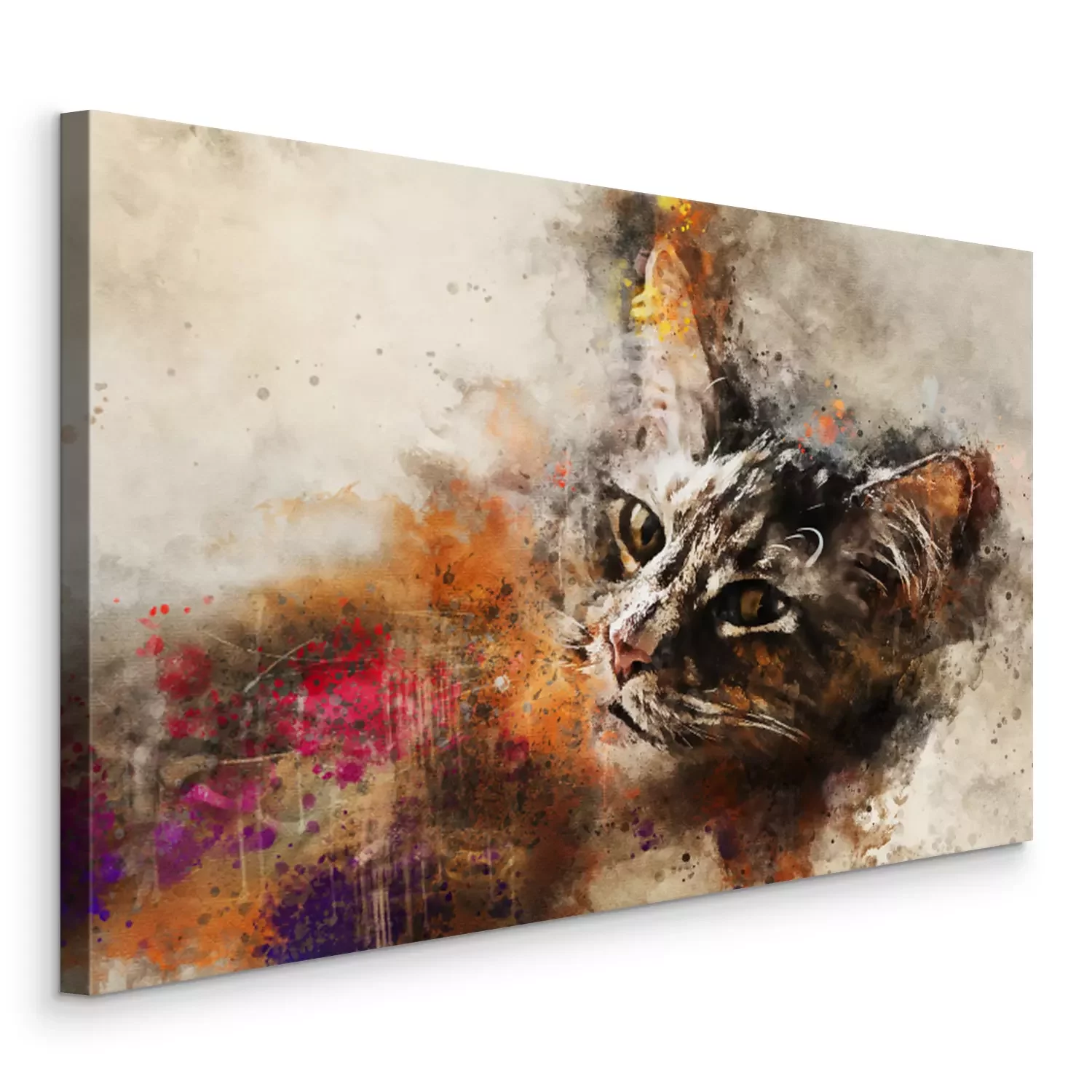 Bild Cat art. Beautiful abstract cat artwork - watercolor drawing, mixed media. The face of a cat in a contemporary style of abstract art.