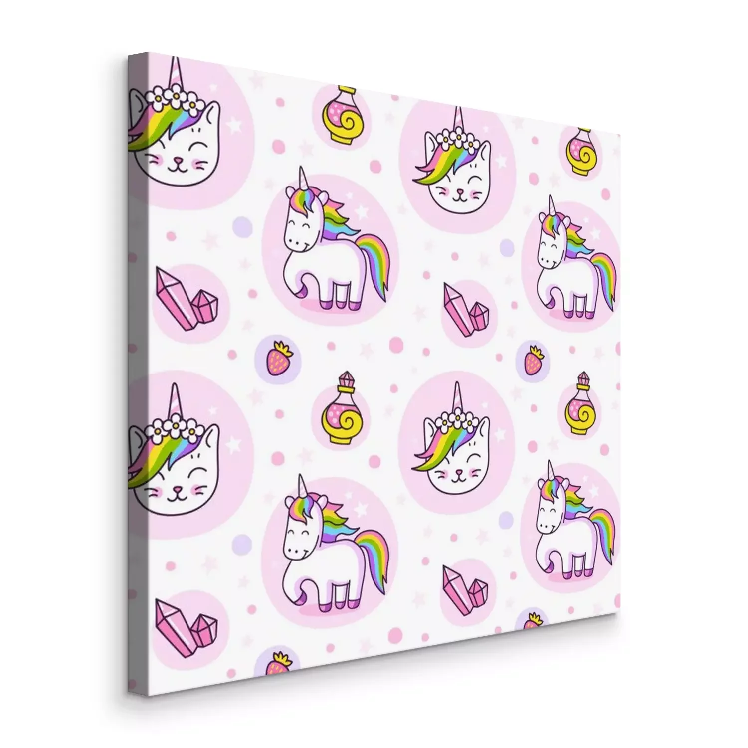 Bild Cats, unicorns and magic crystals. Cute seamless pattern for wallpaper, textile, fabric, print, bed linen. Vector illustration.