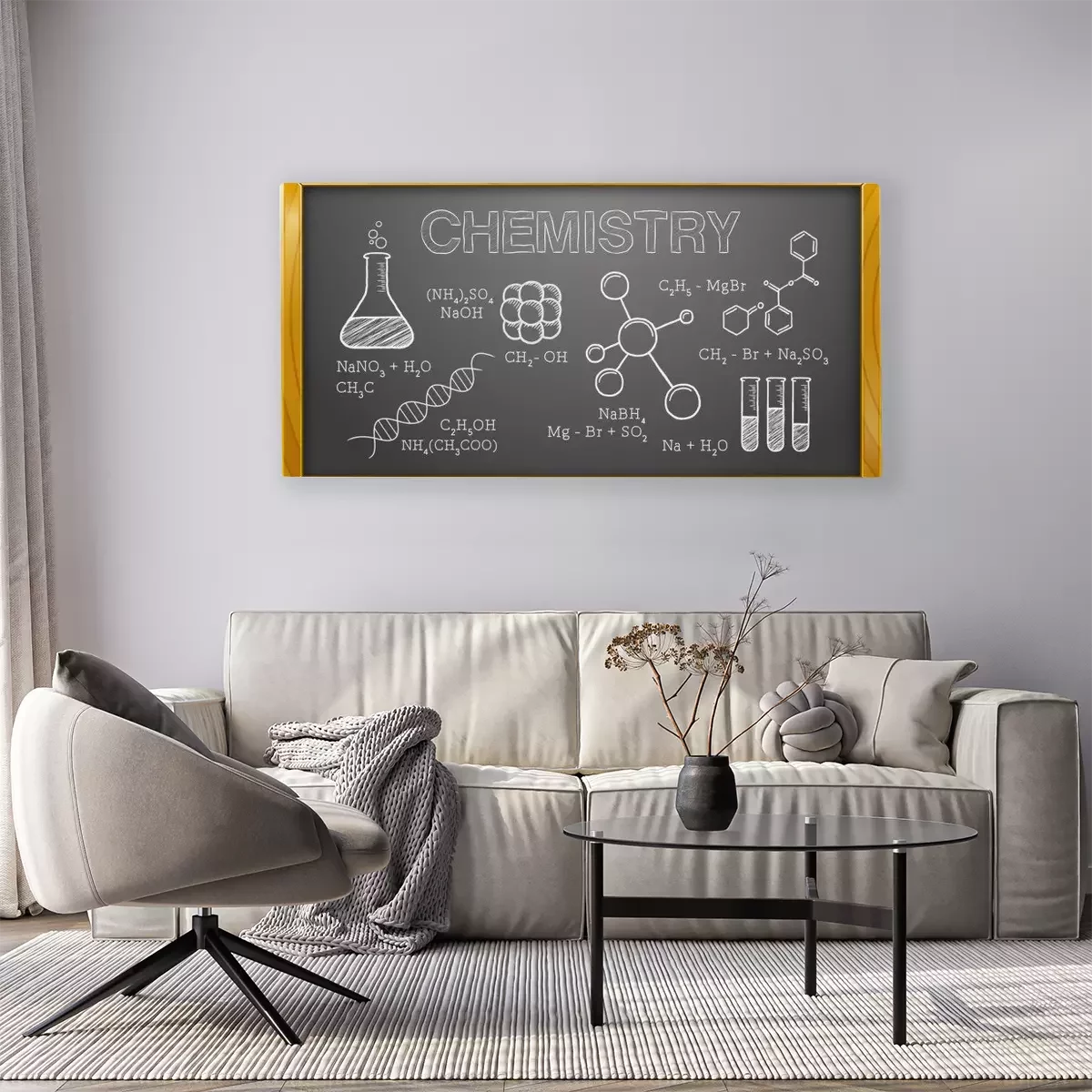 Bild: Chemische Formeln auf einer schwarzen Tafel
