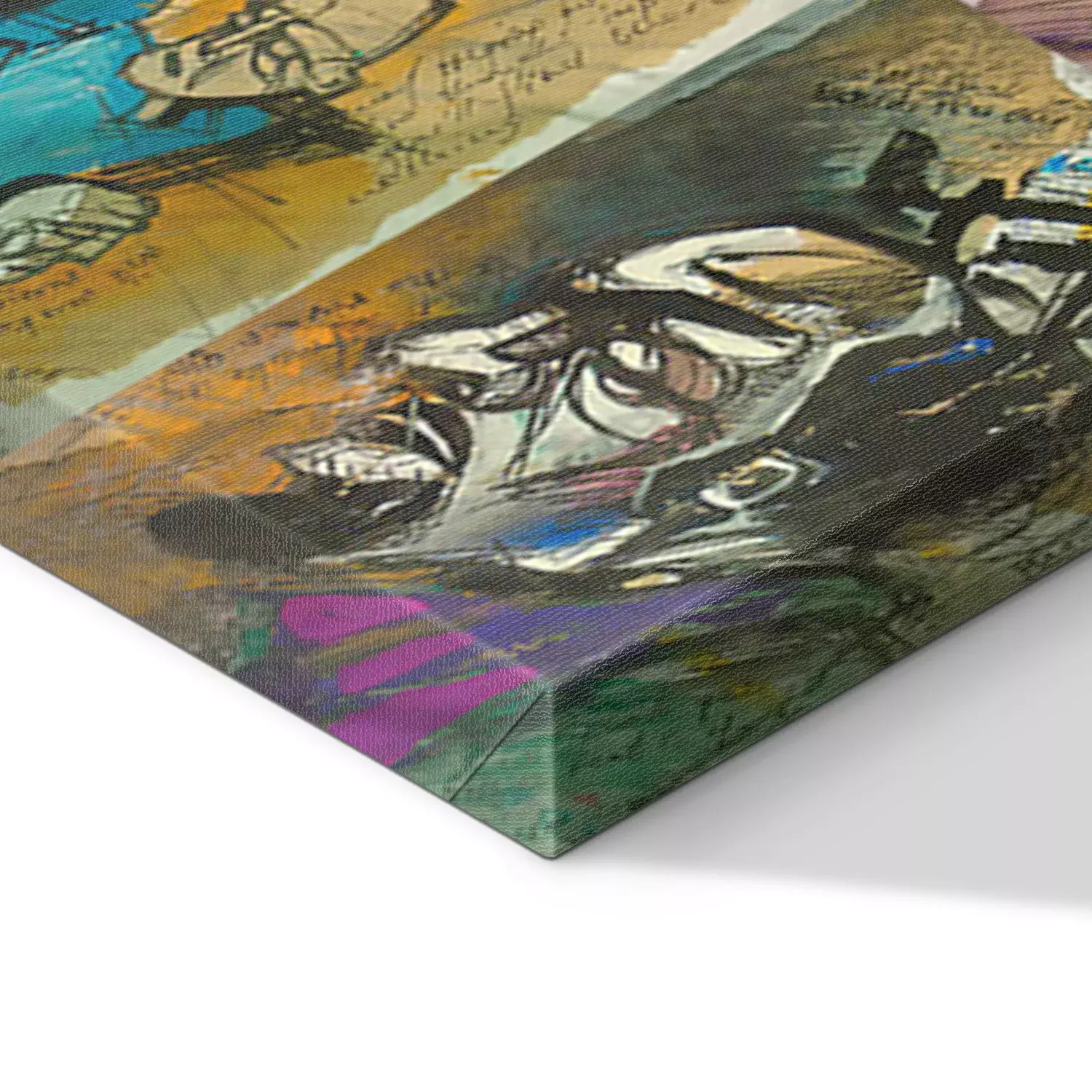 Das Motiv wird auf eine qualitativ hochwertige Leinwand gedruckt, die auf einen Blendrahmen gezogen wird. Da der Aufdruck die Seitenkanten bedeckt, muss das Bild nicht zusätzlich eingerahmt werden. Wir empfehlen außerdem Kompositionen aus mehreren Bildern, die ein harmonisches Ganzes bilden.