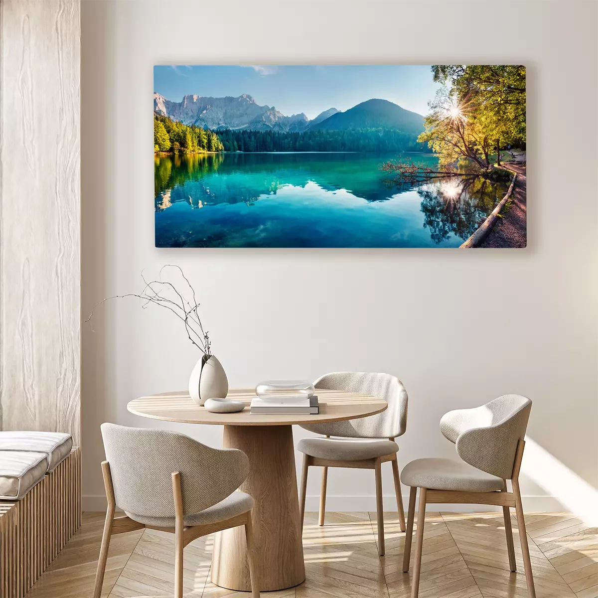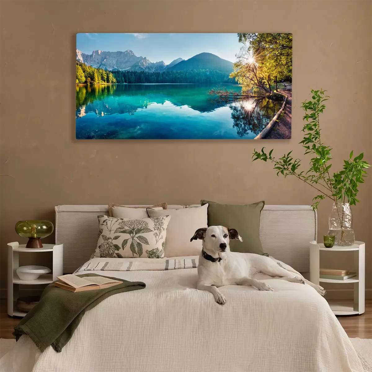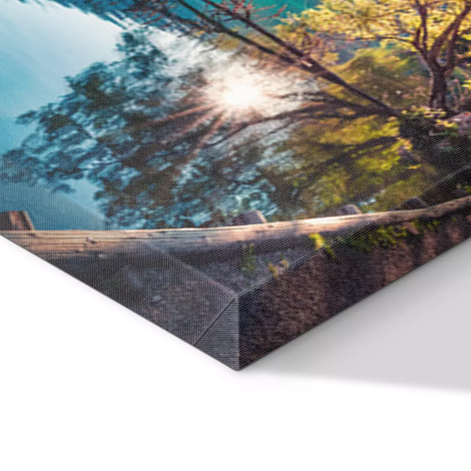 Das Motiv wird auf eine qualitativ hochwertige Leinwand gedruckt, die auf einen Blendrahmen gezogen wird. Da der Aufdruck die Seitenkanten bedeckt, muss das Bild nicht zusätzlich eingerahmt werden. Wir empfehlen außerdem Kompositionen aus mehreren Bildern, die ein harmonisches Ganzes bilden.