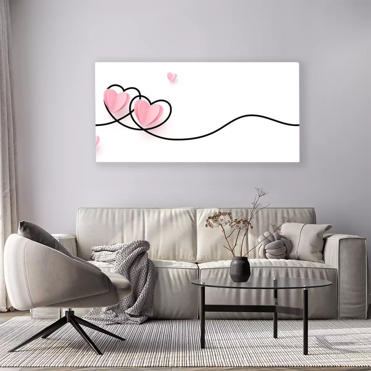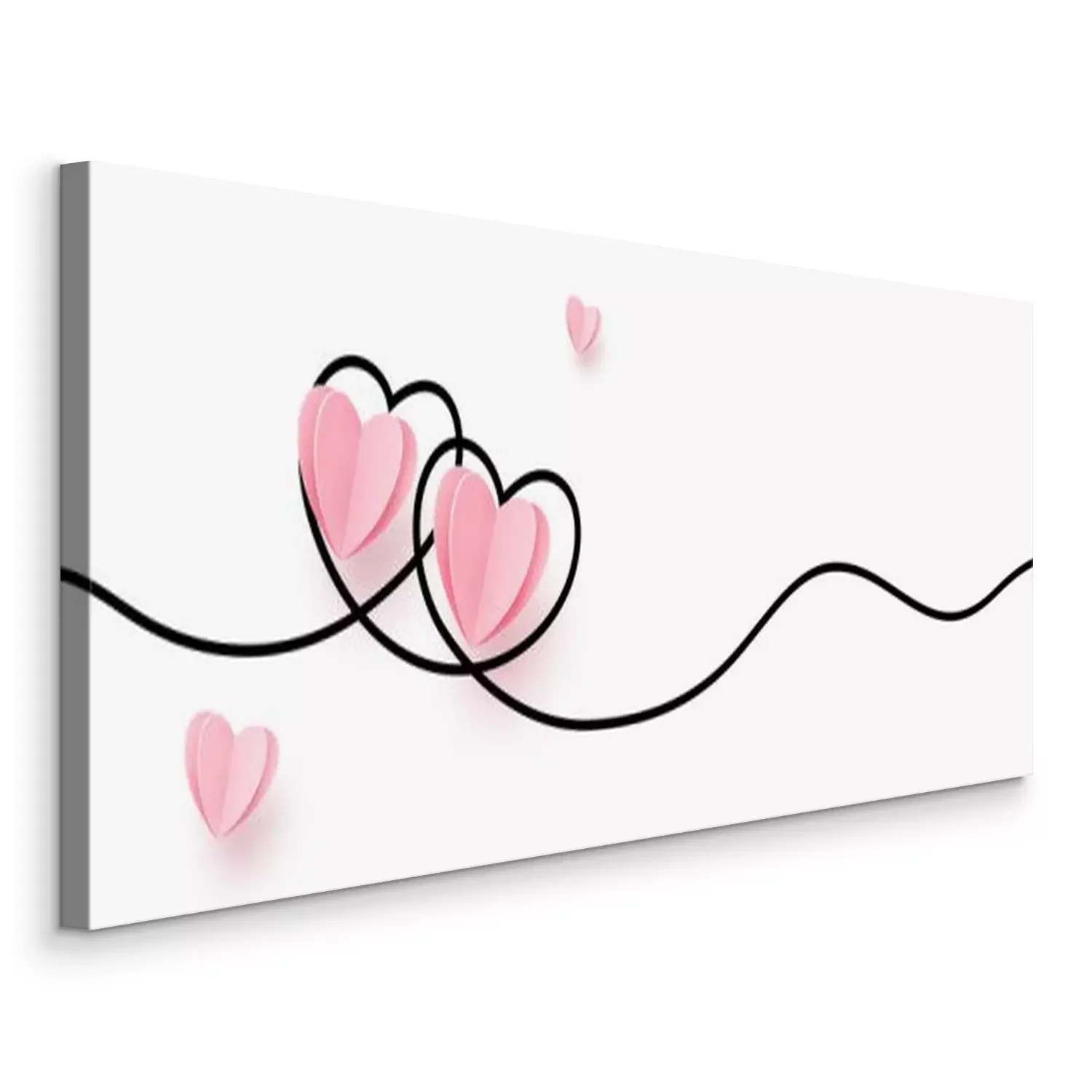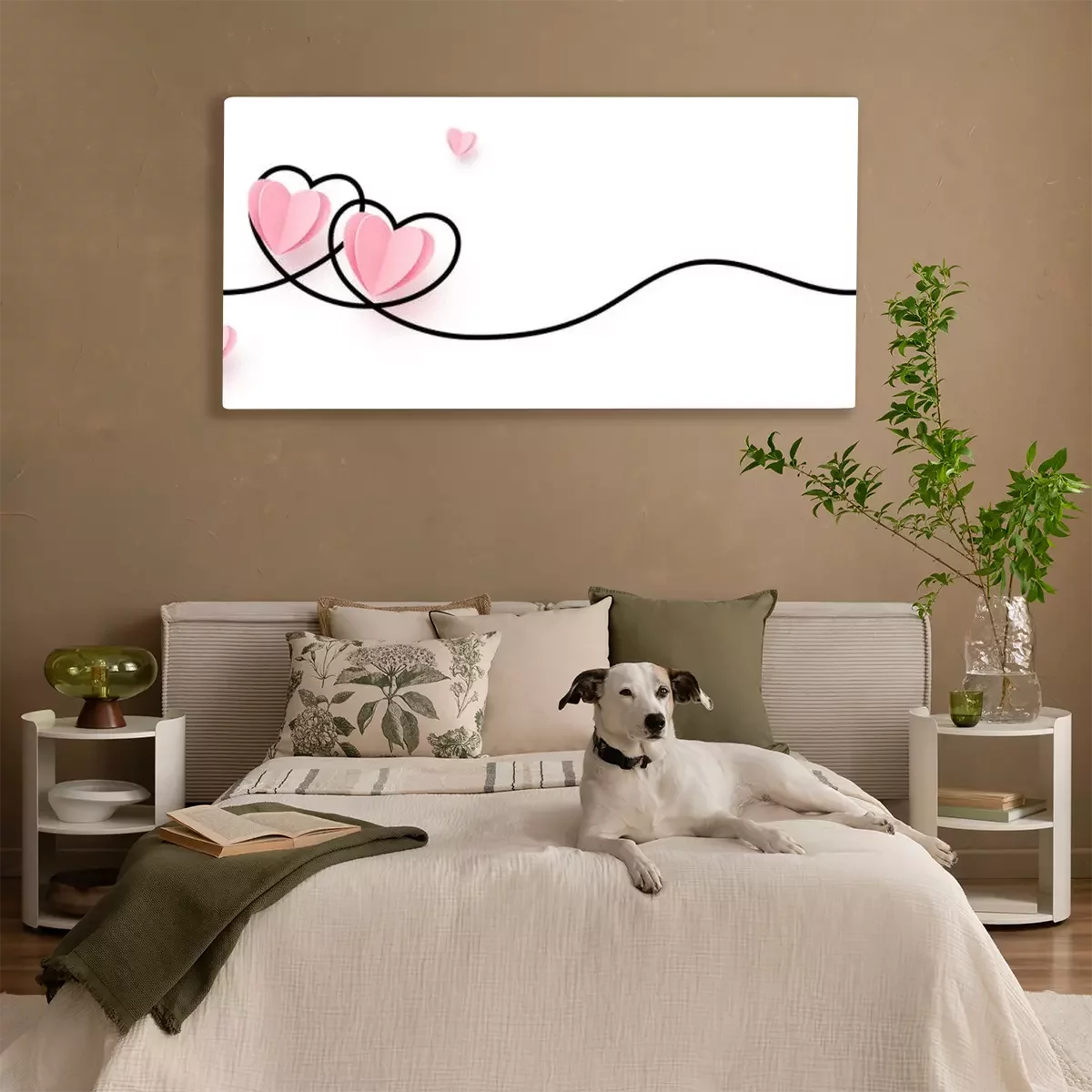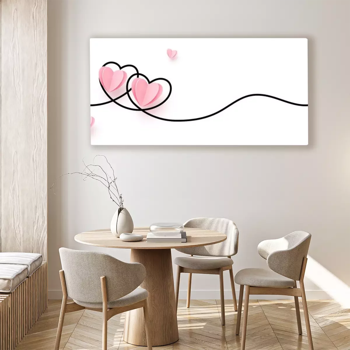 Bild Continuous line heart shape border with realistic paper heart on white background for valentines, women, mother day greeting invitation graphic design