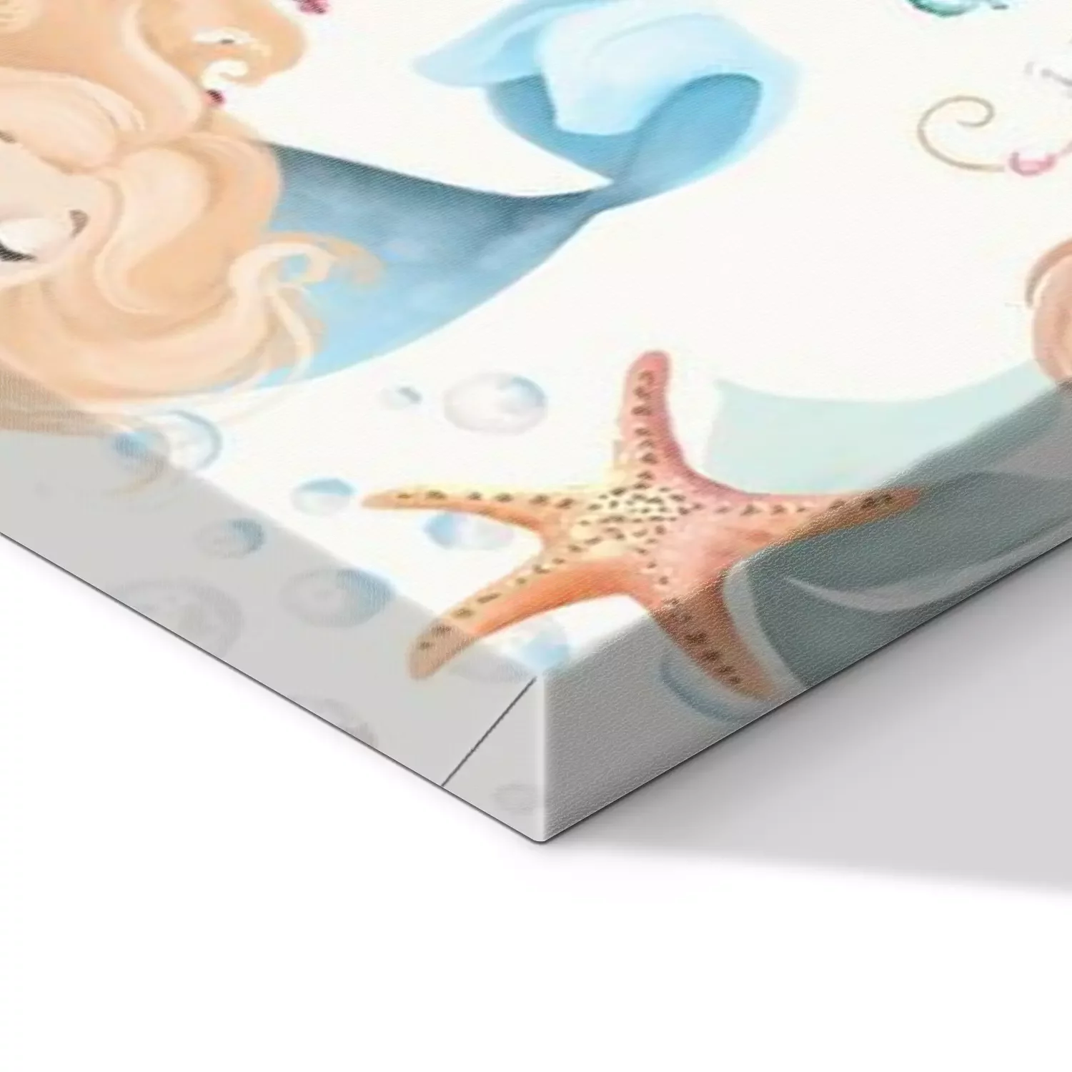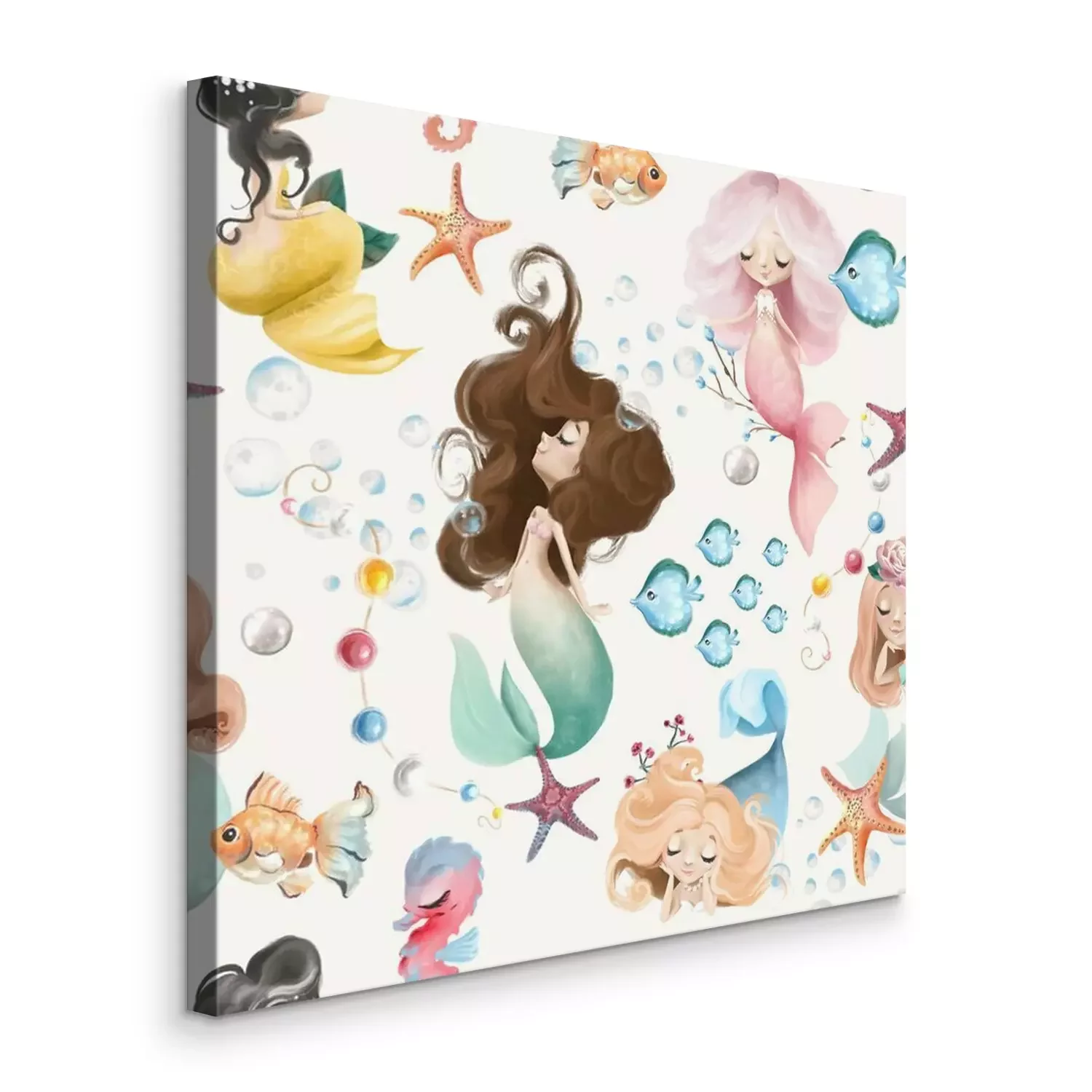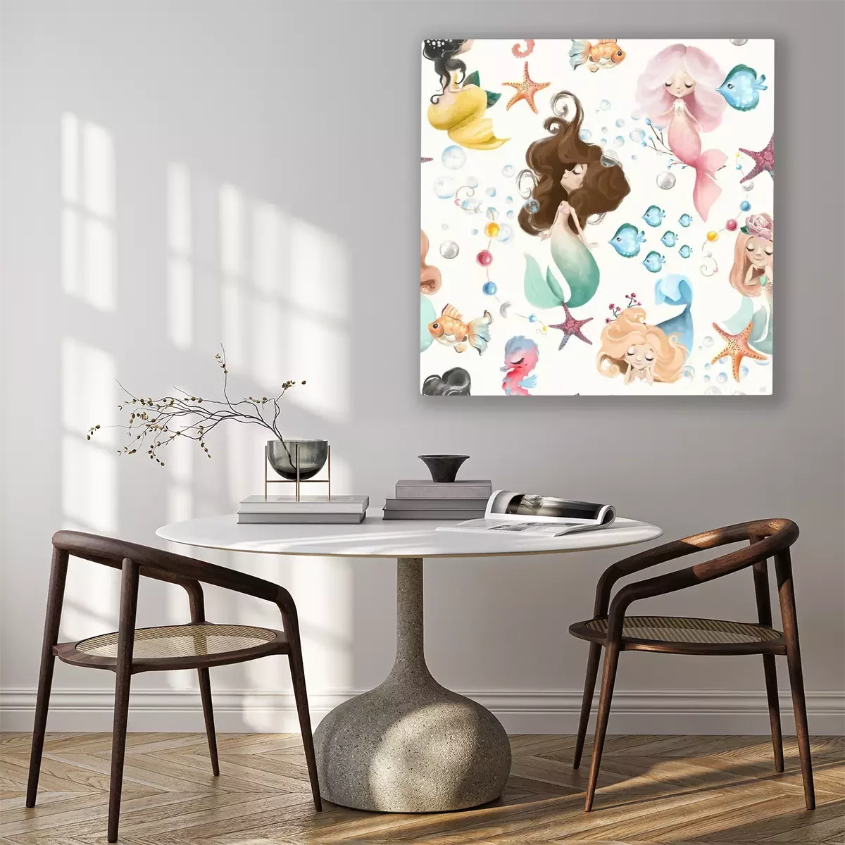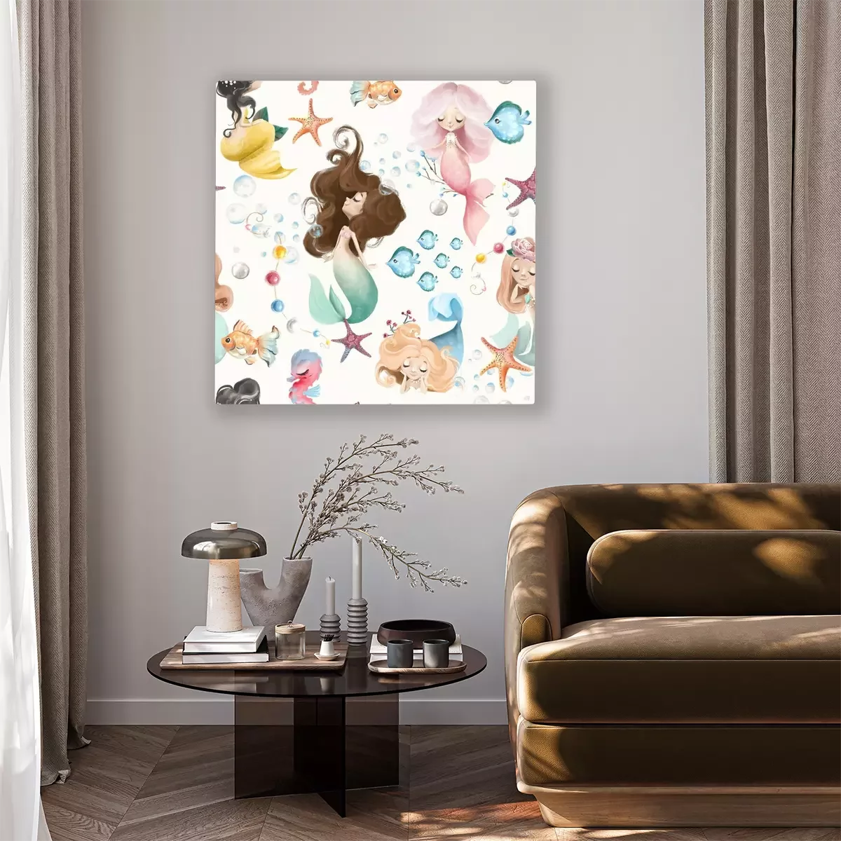 Bild: Cute and beautiful seamless pattern - little mermaids, fishes and flowers watercolor illustration