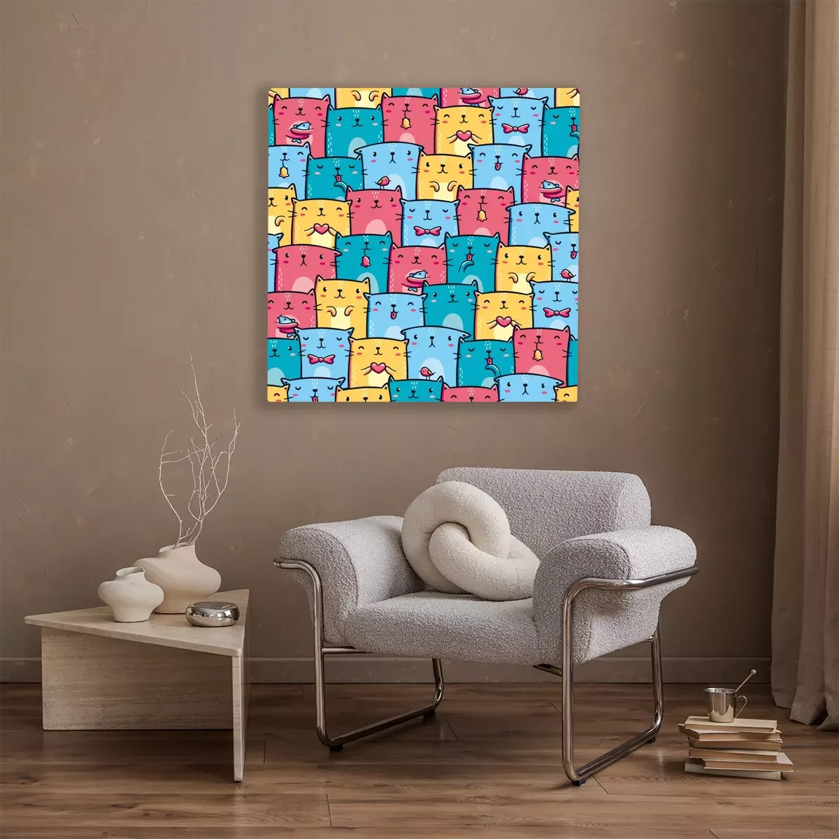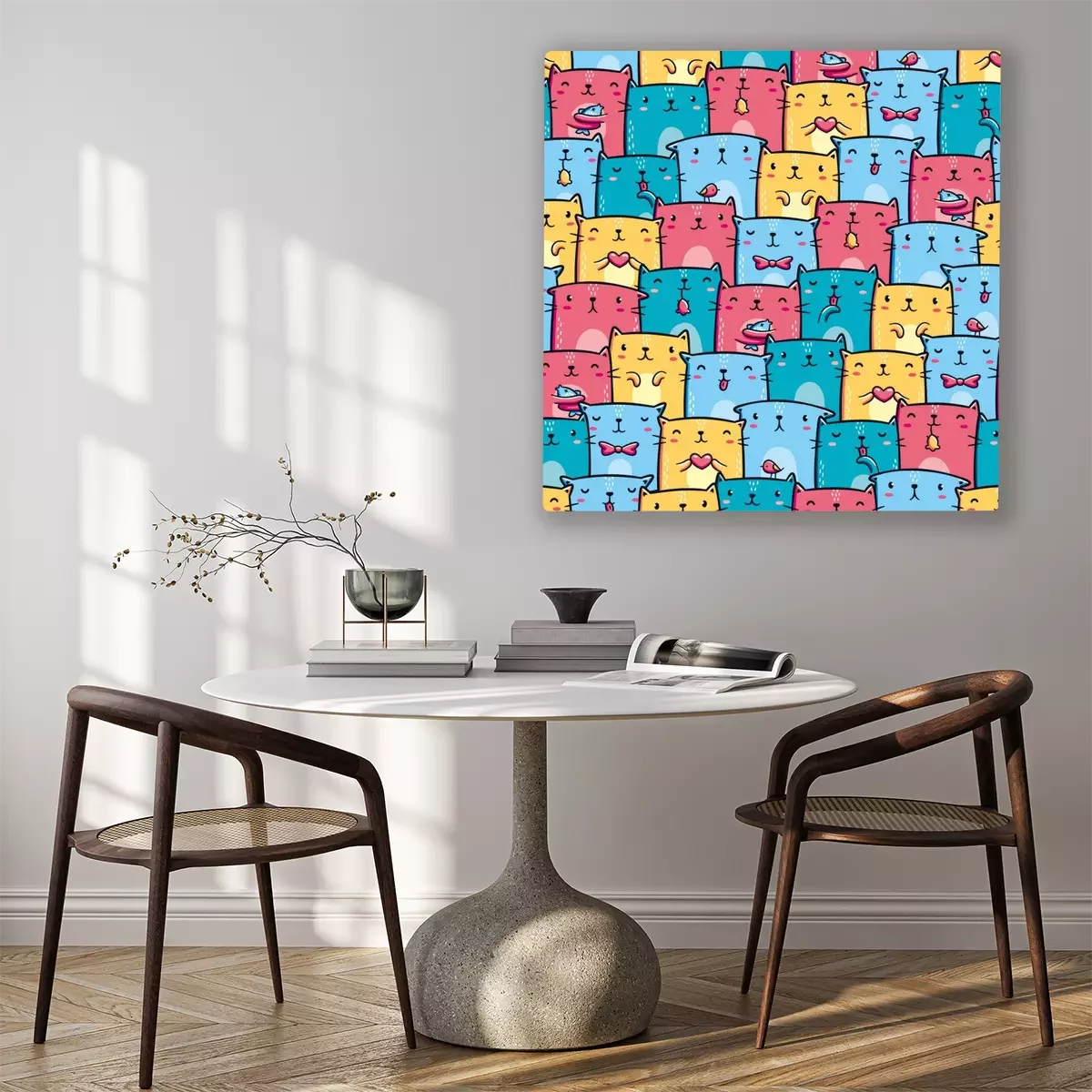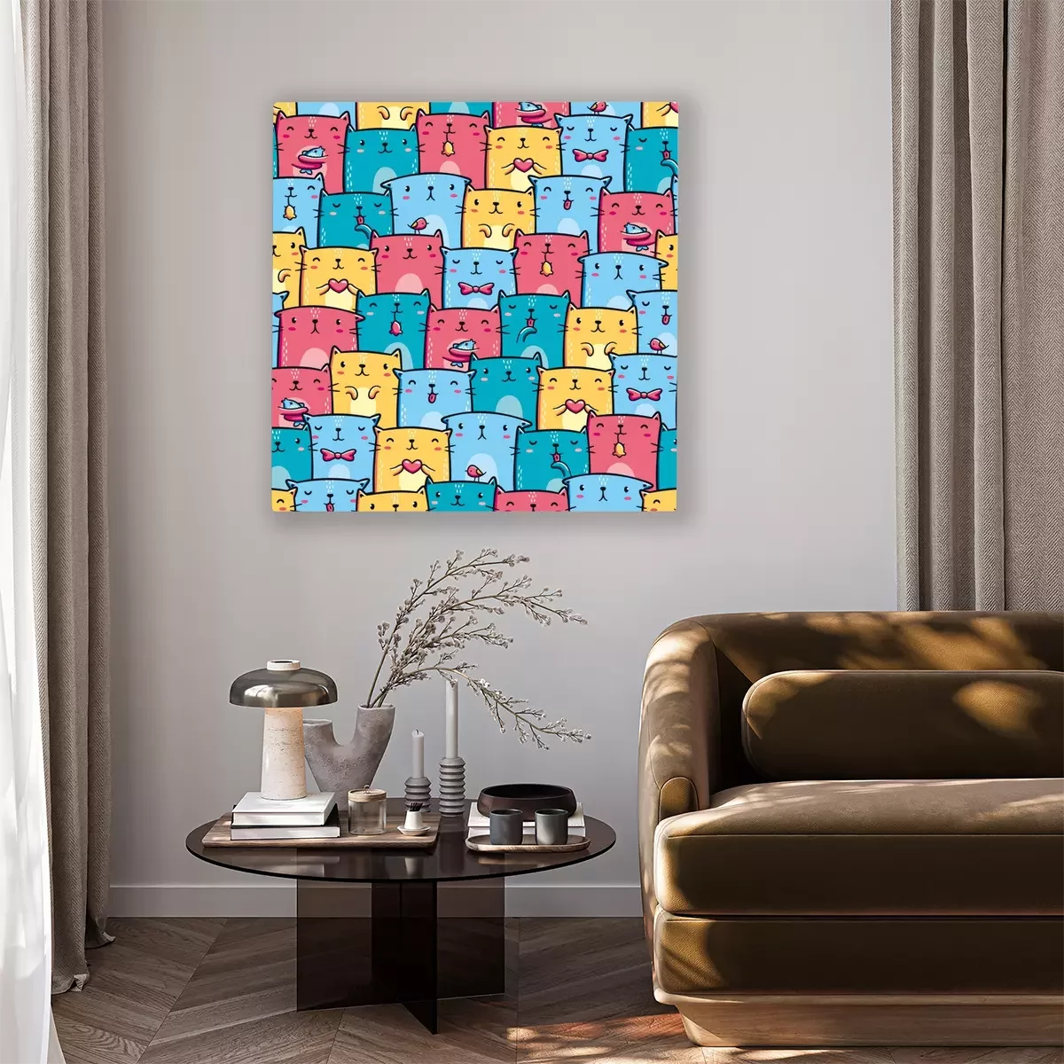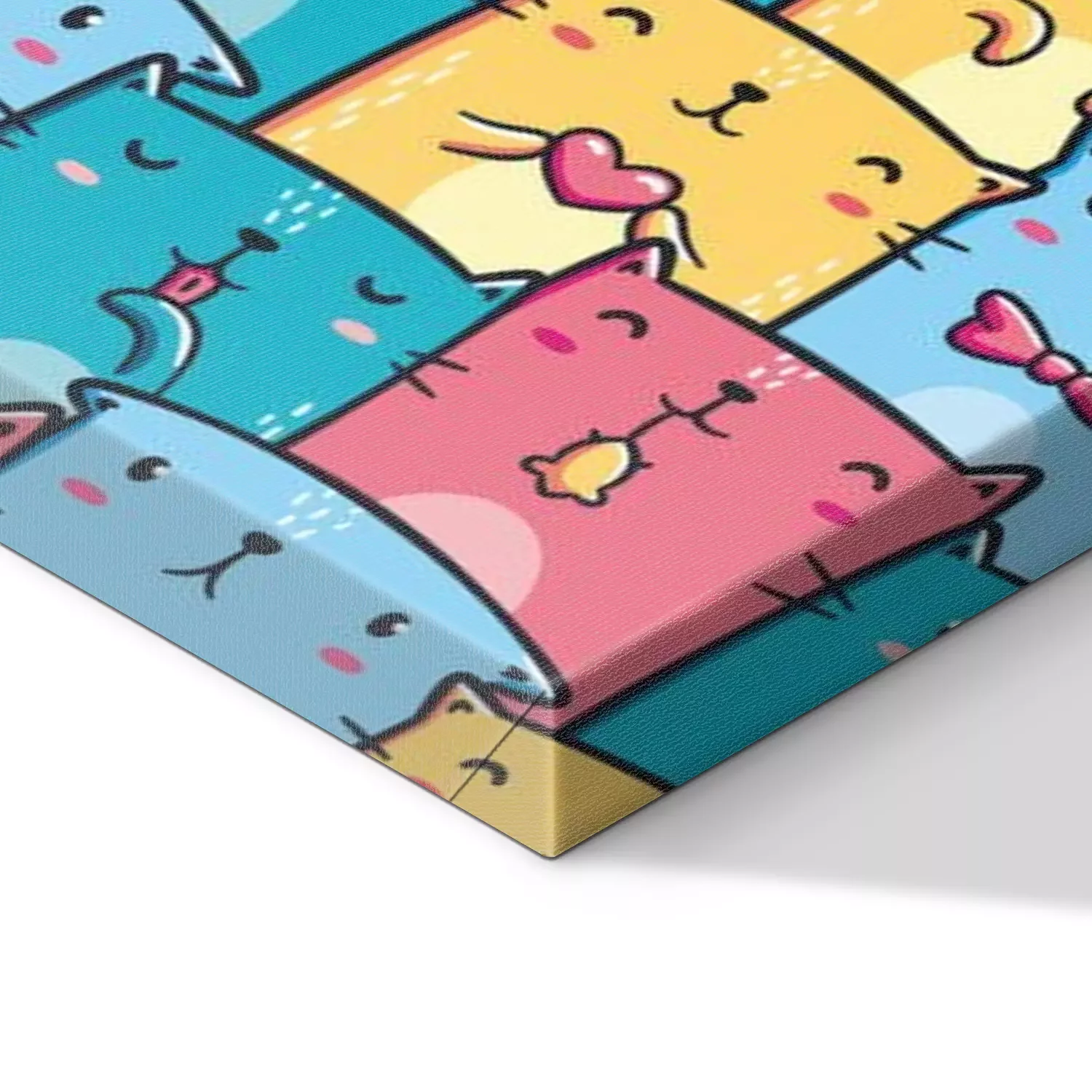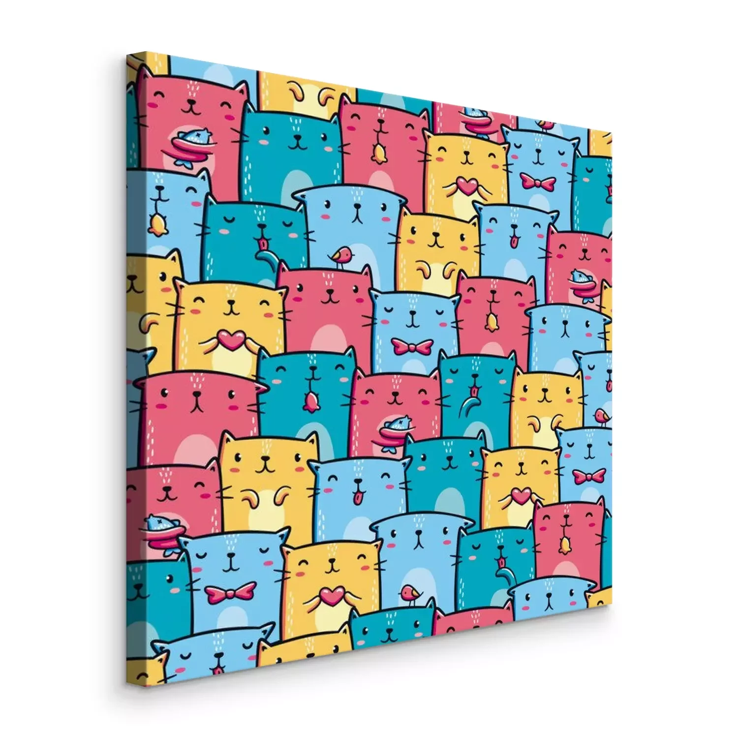 Bild Cute colorful cats seamless pattern. Kawaii characters, hand drawn style. Design for print (apparel, wrapping paper, background, poster)