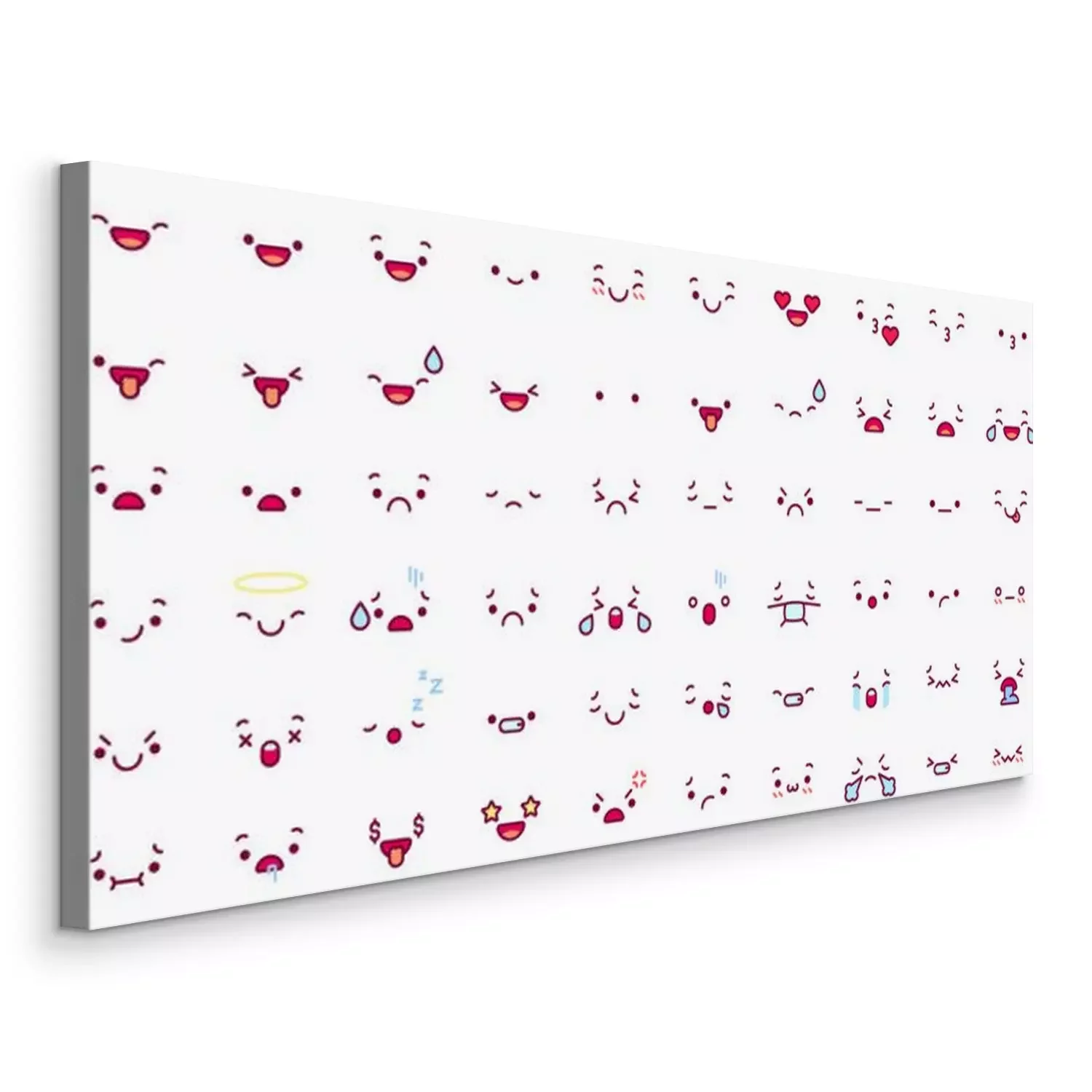 Bild Cute emoticon emoji faces. Cartoon kawaii face expression in japanese anime character. Manga emotion kiss, cry and angry vector icons set. Happy and sad emotions, sleeping, ill, stressed