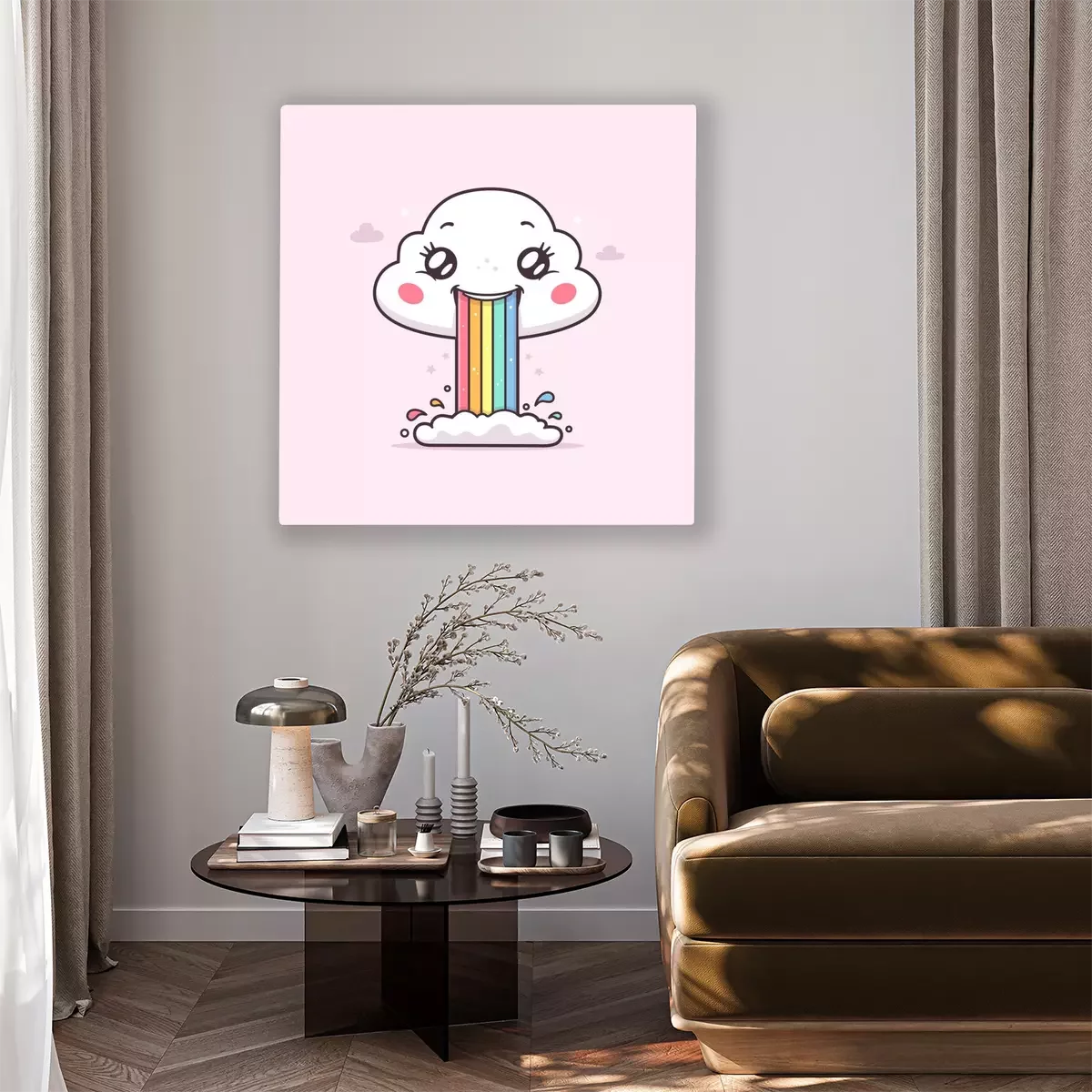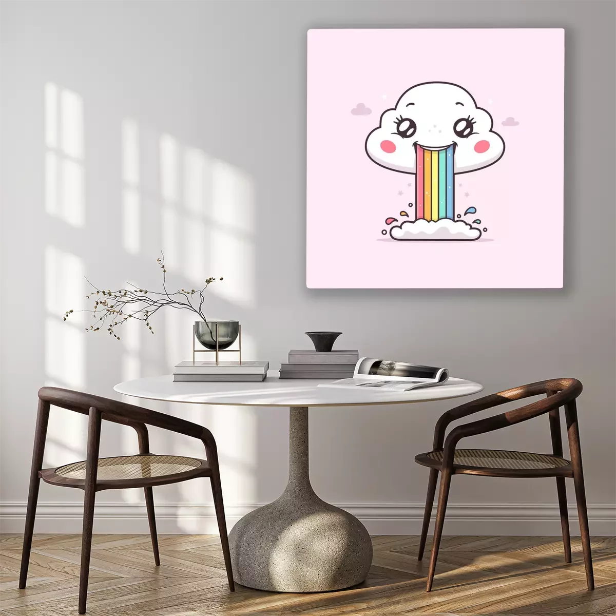 Bild Cute kawaii cloud puking or vomiting rainbow vector cartoon illustration