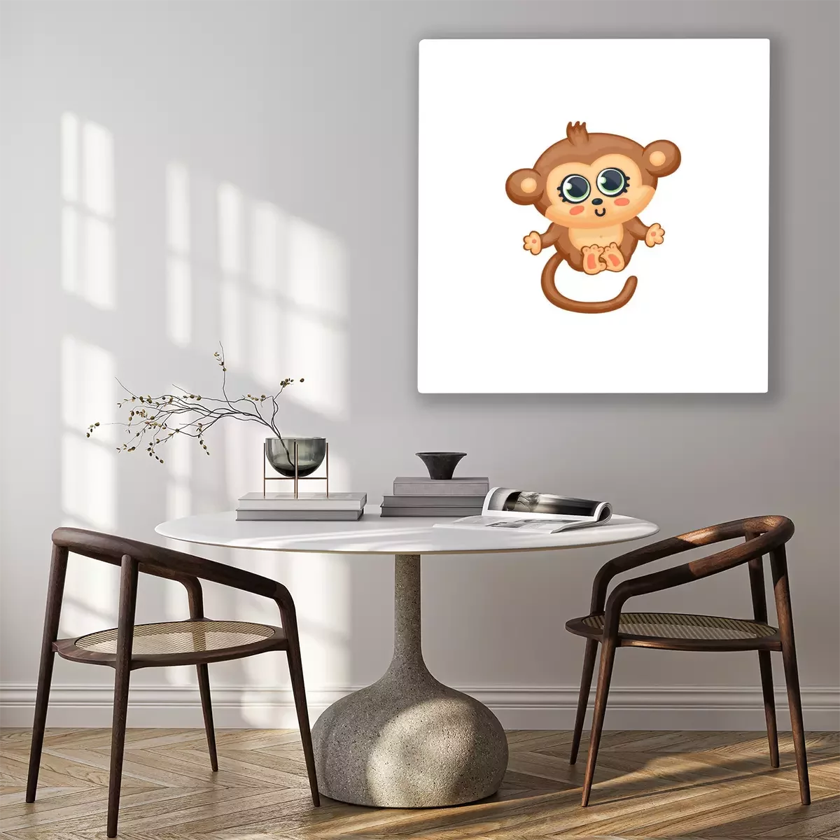 Bild Cute monkey with big eyes vector illustration in kawaii anime style isolated.
