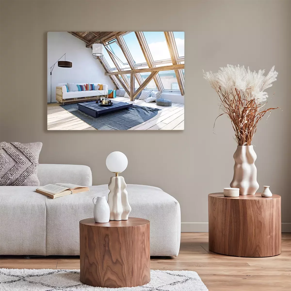 Das Motiv wird auf eine qualitativ hochwertige Leinwand gedruckt, die auf einen Blendrahmen gezogen wird. Da der Aufdruck die Seitenkanten bedeckt, muss das Bild nicht zusätzlich eingerahmt werden. Wir empfehlen außerdem Kompositionen aus mehreren Bildern, die ein harmonisches Ganzes bilden.