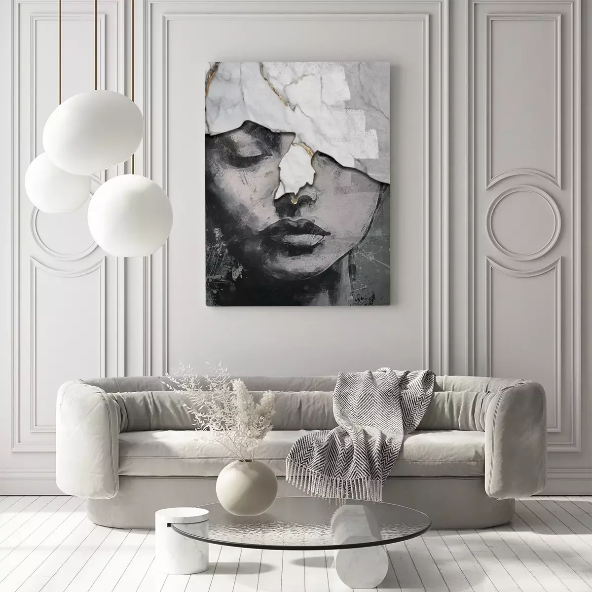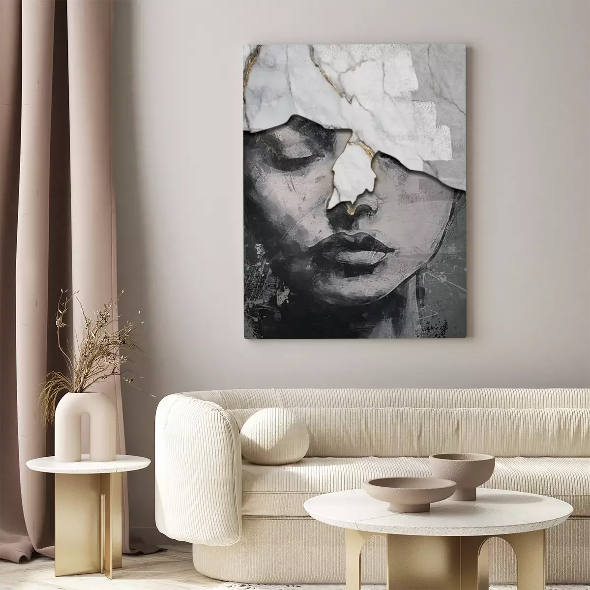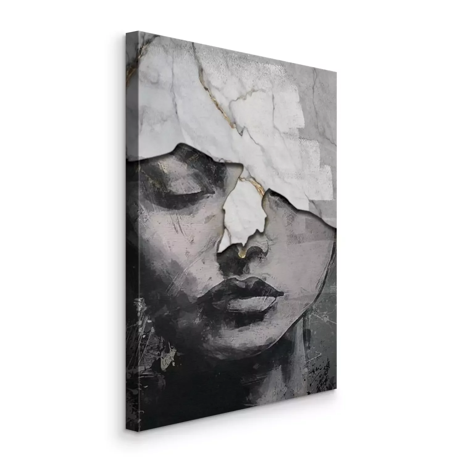 Das gesicht einer frau in einer abstrakten marmorstruktur