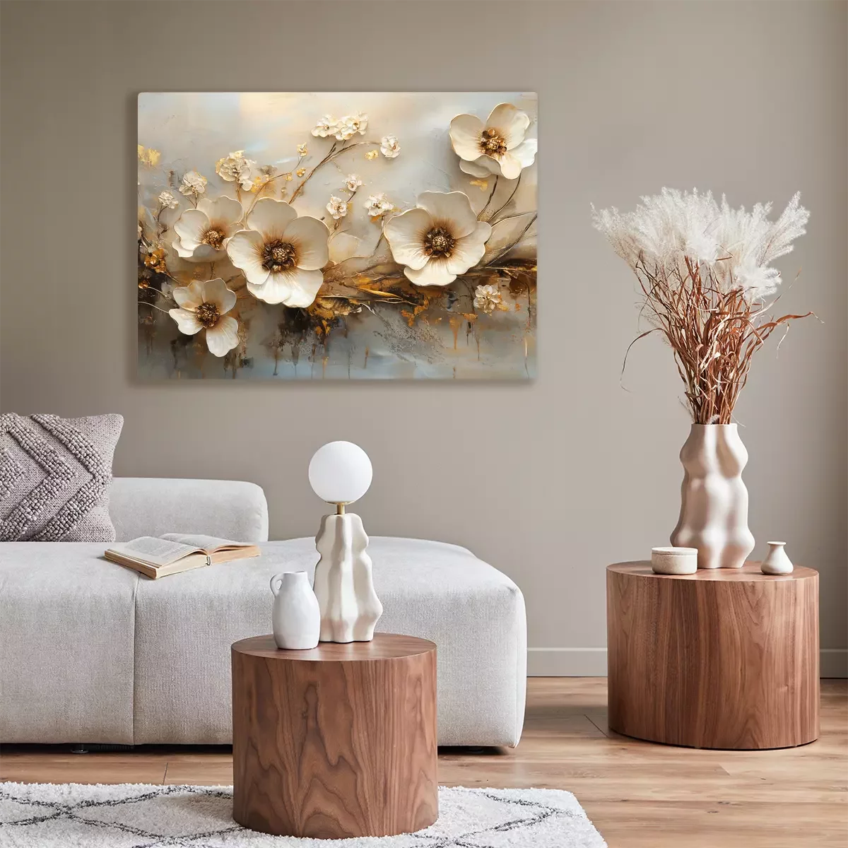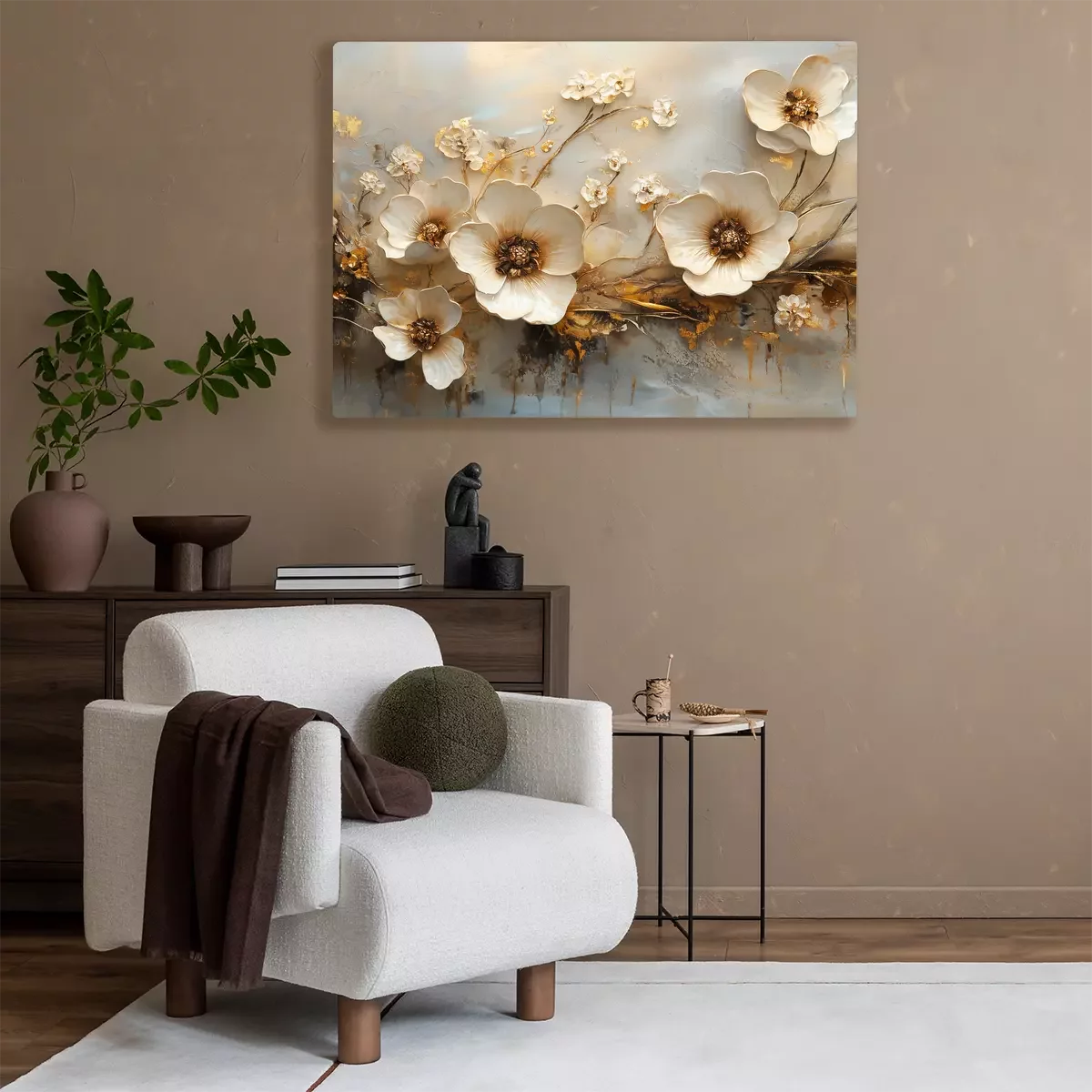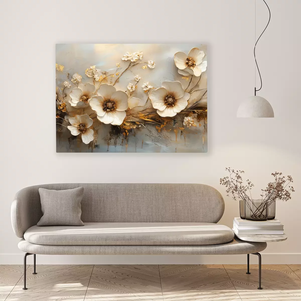 Dekorative 3d-blumen mit goldenen details