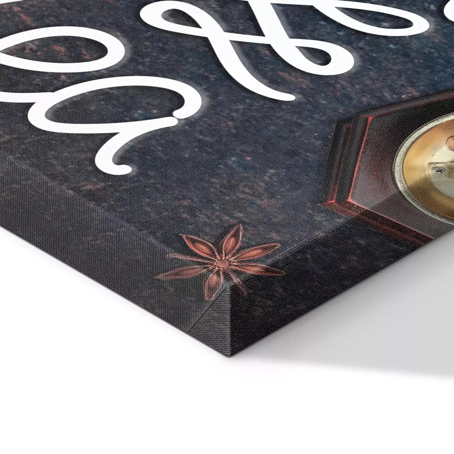 Dekorative kaffeeschrift auf kulinarischem hintergrund
