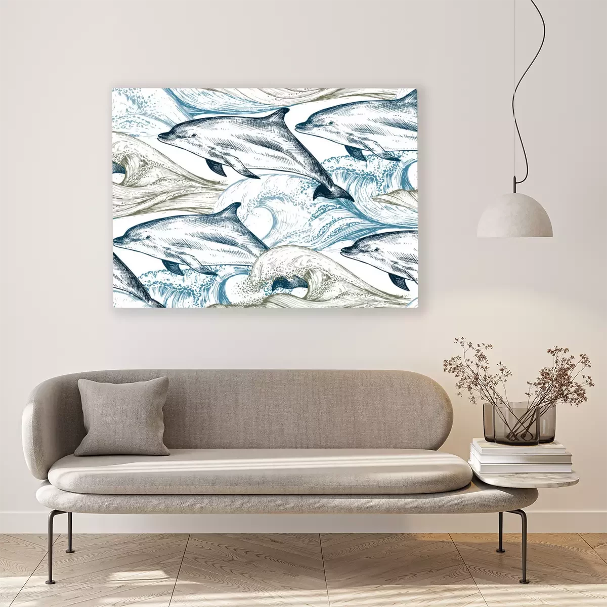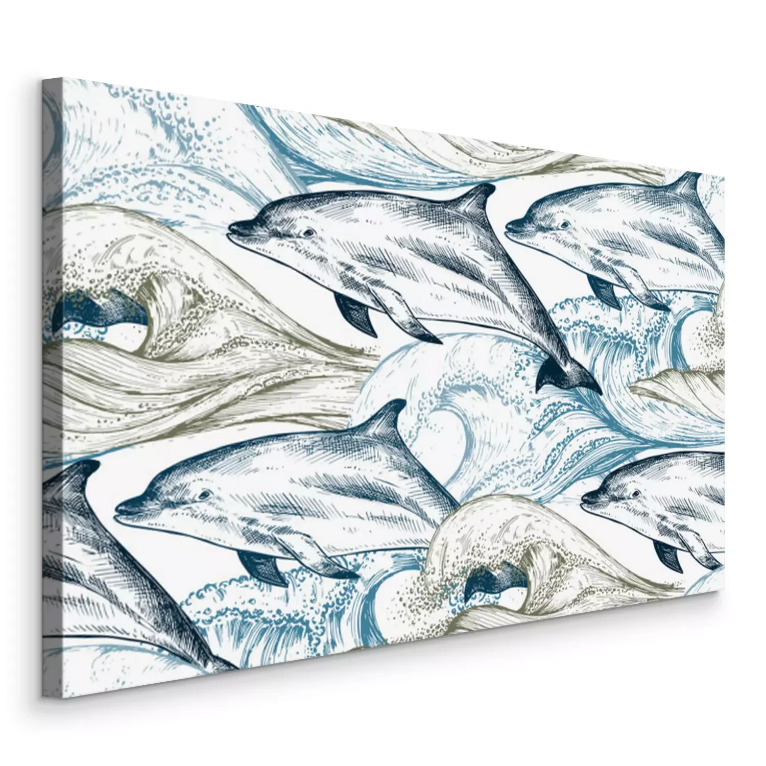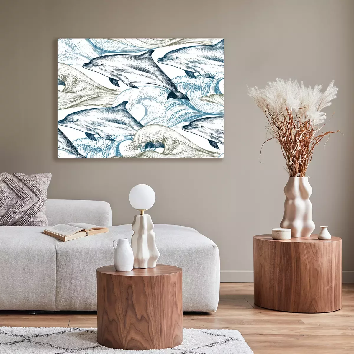 Bild Delfine auf dem Hintergrund von Meereswellen