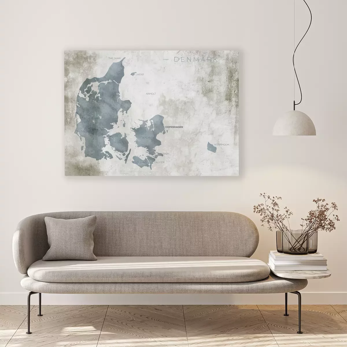 Die blauen grenzen dänemarks vor gealtertem hintergrund