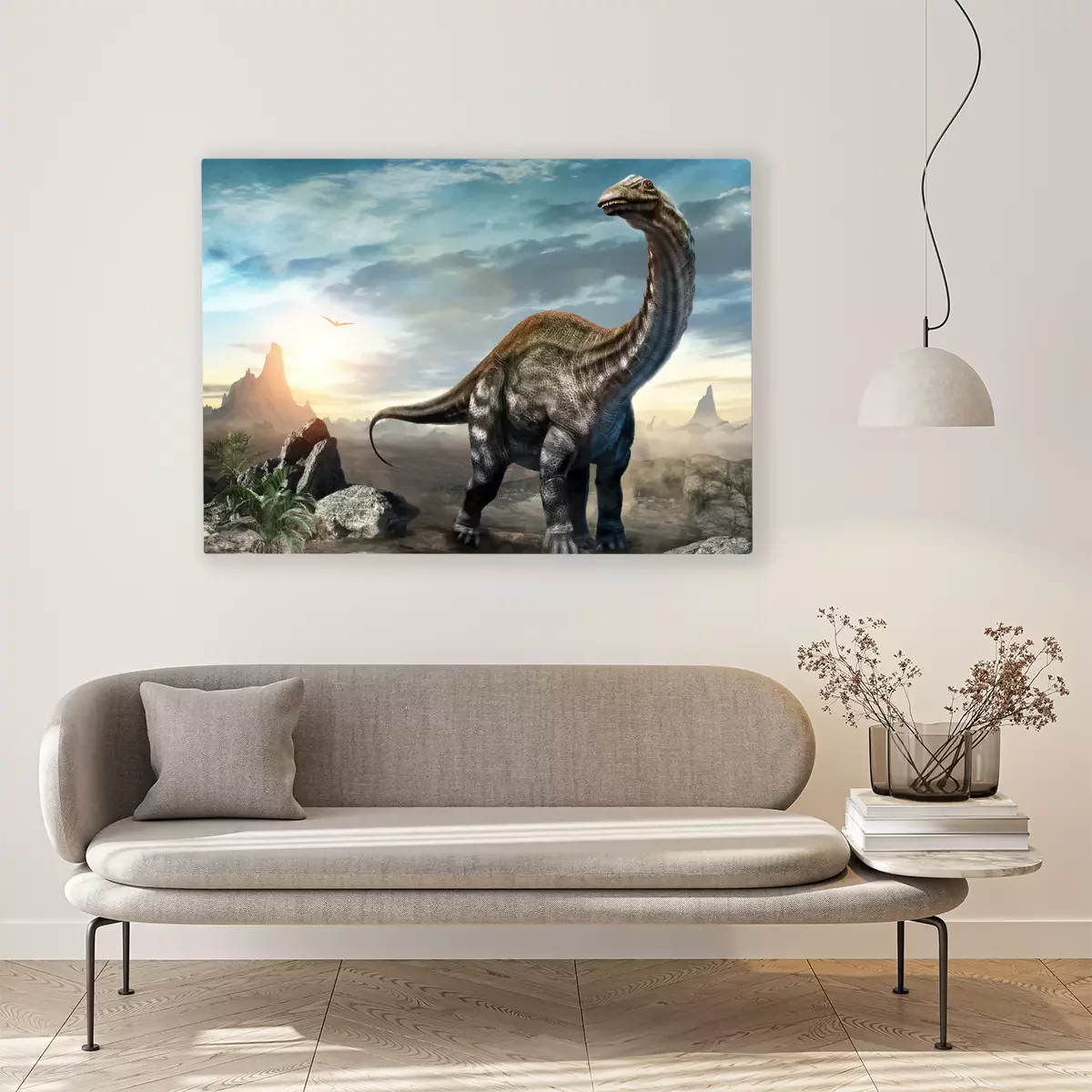 Bild: Dinosaurier Apatosaurus 3D-Konzept vor dem Hintergrund des Sonnenuntergangs