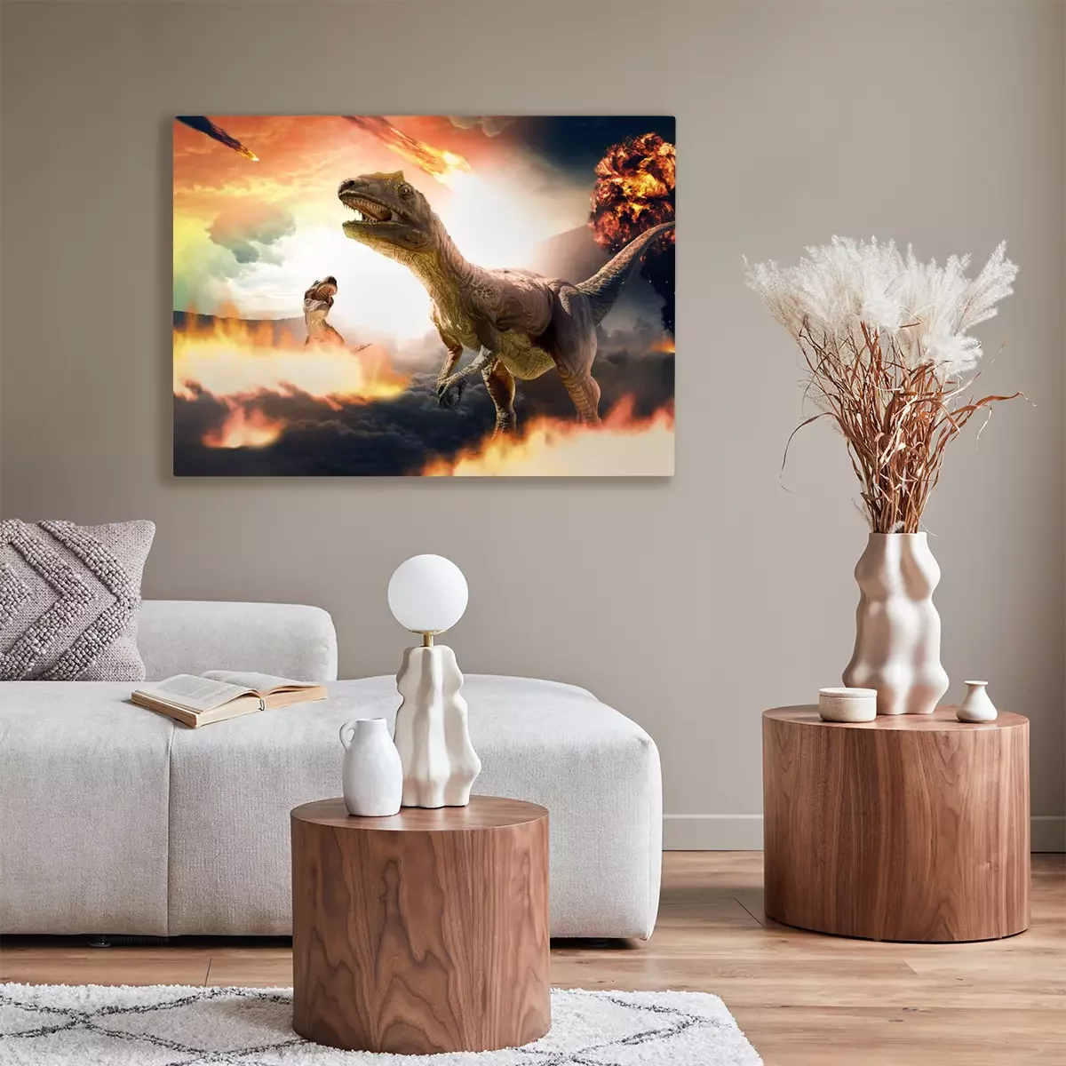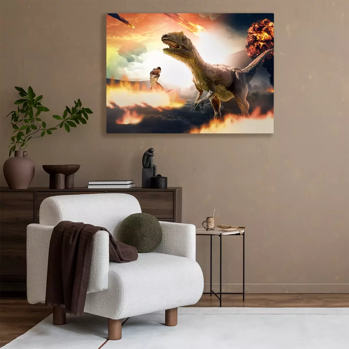 Bild: Dinosaurier inmitten fallender Asteroiden